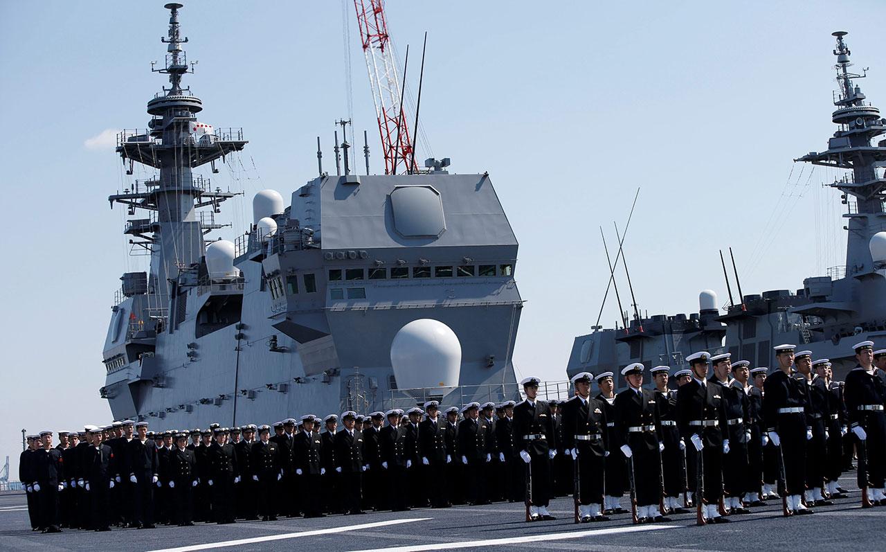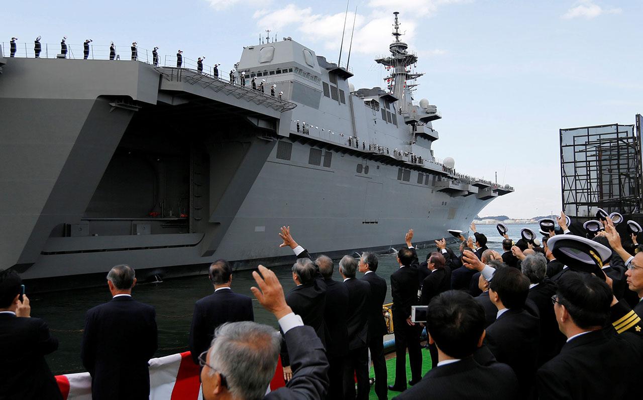 รอยเตอร์ชี้ว่า ความเคลื่อนไหวของรัฐบาลนายกรัฐมนตรีชินโสะ อาเบะ ที่ได้มีพิธีขึ้นระวางประจำการเรือบรรทุกเฮลิคอปเตอร์ อิซุโมะ และคางะ ซึ่งนับเป็นเรือรบที่ใหญ่ที่สุดของญี่ปุ่น นับตั้งแต่สงครามโลกครั้งที่ 2 ถือเป็นการแสดงออกเชิงสัญลักษณ์ของรัฐบาลนายกรัฐมนตรีอาเบะต่อการมีบทบาทระหว่างประเทศมากยิ่งขึ้น เนื่องจากความเคลื่อนไหวดังกล่าวของญี่ปุ่น ถือเป็นการโชว์แสนยานุภาพทางทะเลที่ยิ่งใหญ่ที่สุดของญี่ปุ่นในรอบกว่า 70 ปีเลยทีเดียว