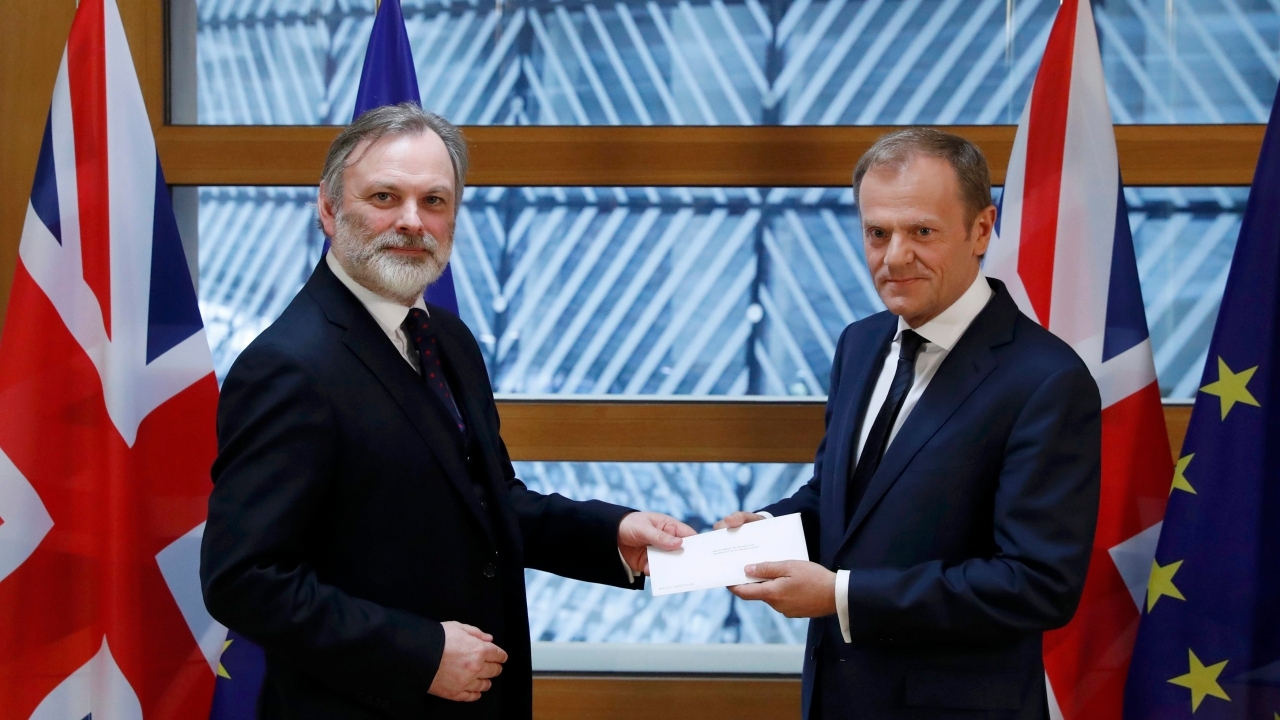 สหราชอาณาจักรประกาศไว้เมื่อสัปดาห์ก่อนว่าพวกเขาจะยื่นหนังสือแจ้งเรื่องการทำเบร็กซิตในวันที่ 29 มี.ค. ซึ่งในช่วงเช้าของวันดังกล่าว เซอร์ ทิม บาร์โรว์ ผู้แทนถาวรแห่งสหราชอาณาจักรได้ยื่นจดหมายอย่างเป็นทางการจำนวน 6 หน้าให้แก่นายโดนัลด์ ทัสค์ ที่กรุงบรัสเซลส์ เมืองหลวงของประเทศเบลเยียม
