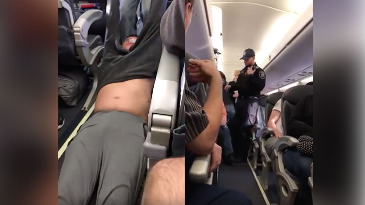 พยานคนหนึ่งยังเล่าว่า ชายผู้นี้ ไม่พอใจมากที่เขาถูกสุ่มเลือกให้ลงจากเครื่องบิน และพยายามจะโทรศัพท์หาทนาย แต่ทางผู้จัดการของสายการบินได้มาแจ้งกับเขาว่า ถ้าเขาไม่ยอมลงจากเครื่องบินแต่โดยดี จะเรียกเจ้าหน้าที่ด้านความปลอดภัยมานำตัวเขาลงไป จนในที่สุด ชายคนนี้ก็โดนเจ้าหน้าที่คนที่ 3 มาฉุดออกจากที่นั่งและลากตัวเขาลงมา ก่อนเจ้าหน้าที่จะช่วยกันจับแขนจับขาหามเขาลงไป ขณะที่มีผู้โดยสารเห็นว่ามีเลือดออกบริเวณใบหน้าของเขาด้วย