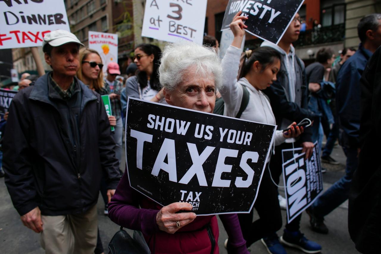 กลุ่มผู้จัดการเดินขบวนซึ่งถูกเรียกว่า ‘การเดินขบวนภาษี’ (Tax March) ในกว่า 150 เมืองทั่วประเทศ ระบุว่า พวกเขาต้องการดึงความสนใจไปสู่เรื่องการปฏิเสธที่จะเปิดเผยประวัติการเสียภาษีของนายทรัมป์ ทั้งที่เป็นธรรมเนียมที่ประธานาธิบดีสหรัฐฯ ต้องปฏิบัติมาตลอดนานกว่า 40 ปี โดยการเดินขบวนยังเกิดขึ้นตรงกับวันเส้นตายการจ่ายภาษีในสหรัฐฯ ด้วย