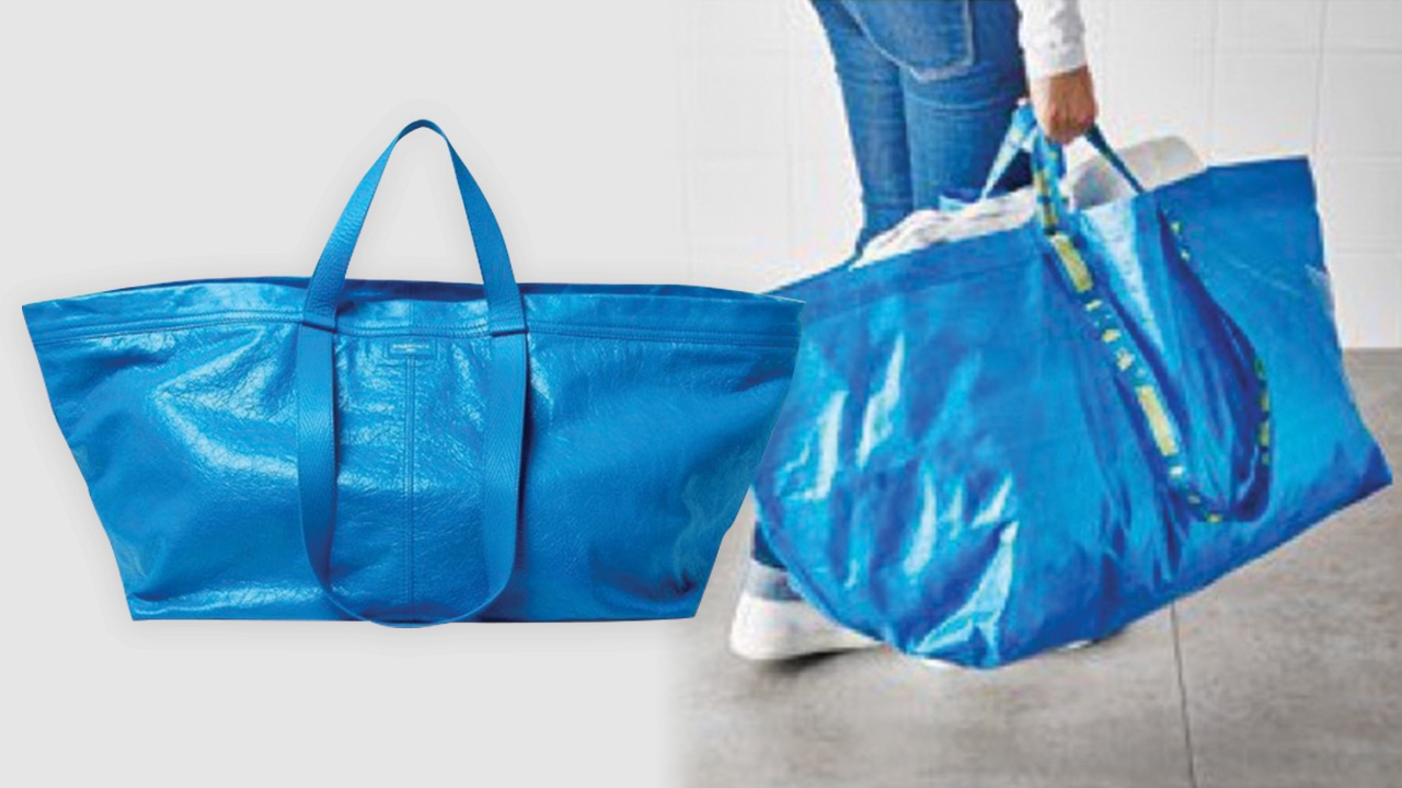 กระเป๋าทั้งสองแบบมีรูปแบบและขนาดแทบจะเท่ากันเลยทีเดียว ต่างกันตรงที่ของ Balenciaga ผลิตจากหนังวัวอย่างดีราคาใบละ 1,700 ยูโร (63,000 บาท) แต่ถุงช็อปปิ้ง Ikea หากใครต้องการก็ซื้อได้ราคาเพียง .80 ยูโร (30 บาท)
