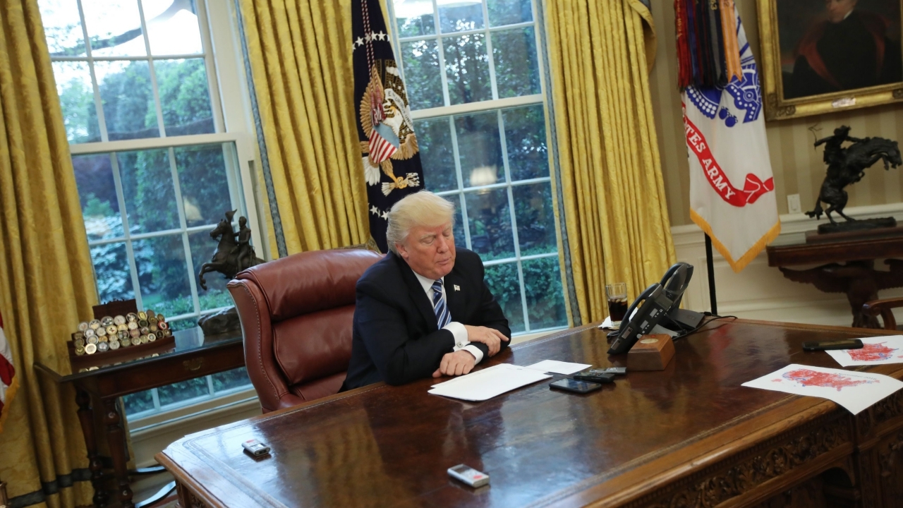 บีบีซี ชี้ว่า หลังจากประธานาธิบดีทรัมป์ ชนะเลือกตั้งไม่นาน เขาได้ตำหนิจีนไม่พยายามมากพอที่จะหยุดยั้งการยั่วยุของทางการเกาหลีเหนือ และบอกว่าสหรัฐฯ พร้อมจะจัดการปัญหาเกาหลีเหนือเองลำพังถ้าหากจีนไม่ช่วยเหลือ ทว่าจากการให้สัมภาษณ์นักข่าวรอยเตอร์ จากห้องทำงานรูปไข่ในทำเนียบขาวครั้งนี้ ทรัมป์ ซึ่งได้พบกับประธานาธิบดีสี จิ้นผิง ซึ่งเดินทางไปเยือนสหรัฐฯ เมื่อต้นเดือนเมษายนนี้ กล่าวชมสี จิ้นผิง ที่รักประเทศและประชาชน เพราะไม่ต้องการเห็นสถานการณ์วุ่นวายและมีคนล้มตาย