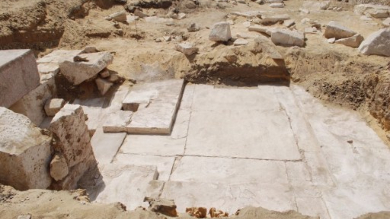 ซากพีระมิดที่ค้นพบในโบราณสถานดาห์ซูร์ เมื่อ 3 เม.ย.