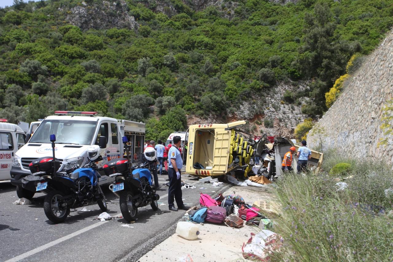 เมื่อ 13พ.ค.สำนักข่าวบีบีซี รายงานเกิดเหตุสลด รถมินิบัสนักท่องเที่ยว ประสบอุบัติเหตุพุ่งชนแบริเออร์ ก่อนพุ่งตกหน้าผา ร่วงลงมาบนถนนด้านล่าง  ใกล้เมืองท่องเที่ยวชายทะเล มาร์มาริส ทางภาคตะวันตกค่อนไปทางใต้ของตุรกี เมื่อ 13พ.ค. เป็นเหตุให้รถมินิบัสพังยับเยิน และมีผู้เสียชีวิตอย่างน้อย 20 ราย บาดเจ็บอีกประมาณ 11 ราย ขณะที่ สื่อท้องถิ่น เผยไม่มีนักท่องเที่ยวชาวต่างชาติในรถมินิบัสคันดังกล่าว