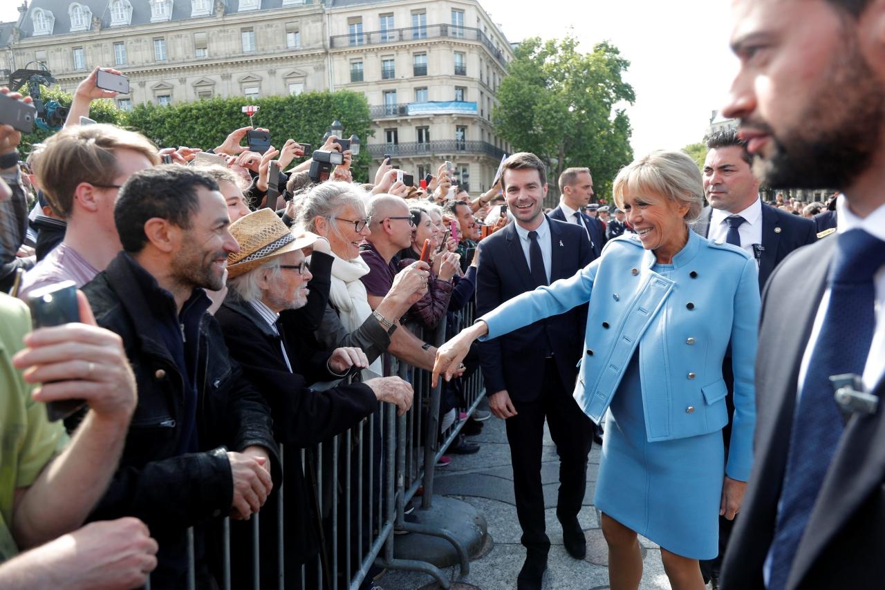 แม้แต่ด้านนางบริจิตต์ โทรนเญอซ์ ภริยาต่างวัยของมาครง ก็ยังทำให้ผู้คน ต้องหันมาสนใจในตัวเธอมากขึ้นกว่าเดิม ด้วยการยืมชุดกระโปรง สีฟ้าจากห้องเสื้อหลุยส์ วิตตอง ซึ่งแมตช์เข้าพอดีกับเสื้อแจ็กเก็ตสีฟ้าในสไตล์ทหาร สวมใส่มาในพิธีสาบานตนรับตำแหน่งผู้นำฝรั่งเศสของสามี หลังจาก ความรักของมาครง และโทรนเญอซ์ ได้สร้างความฮือฮา มาตั้งแต่มาครงชนะเลือกตั้งรอบสอง ได้เป็นประธานาธิบดีคนใหม่ของฝรั่งเศส เพราะมาครงได้หลงรักโทรนเญอซ์มาตั้งแต่สมัยเขายังเป็นนักเรียนมัธยมและเธอ ยังเป็นครู จนสุดท้ายได้แต่งงานกันแม้จะมีอายุห่างกันถึง 25 ปี(ผมรักครู! มาครง ตัวเต็งปธน.ฝรั่งเศส แต่งครูสอนสมัยมัธยม แก่กว่า 25ปี)