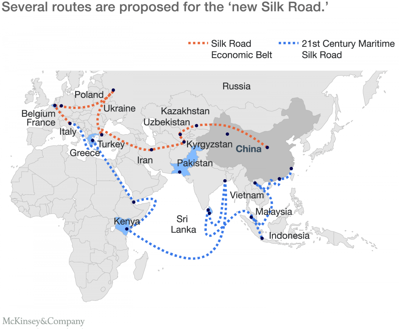 บริษัทแมคคินซีย์ ซึ่งเป็นบริษัทที่ปรึกษาด้านธุรกิจ บอกว่า โครงการเส้นทางสายไหมใหม่ศตวรรษที่ 21 ของจีน มีศักยภาพในการบดบังแผนการฟื้นฟูประเทศต่างๆ หลังสงครามโลกของสหรัฐฯ ในอดีตเลยก็ว่าได้ เพราะเป็นโครงการที่ครอบคลุมประชากรมากถึง 4,500 ล้านคน หรือราว 62% ของประชากรโลก และคิดเป็นหนึ่งในสามของผลผลิตมวลรวมภายในประเทศ (จีดีพี) ของทั้งโลกรวมกัน อีกทั้งยังเป็นการช่วยเคลื่อนย้านสินค้าได้ถึงหนึ่งในสี่ของโลกเลยทีเดียว