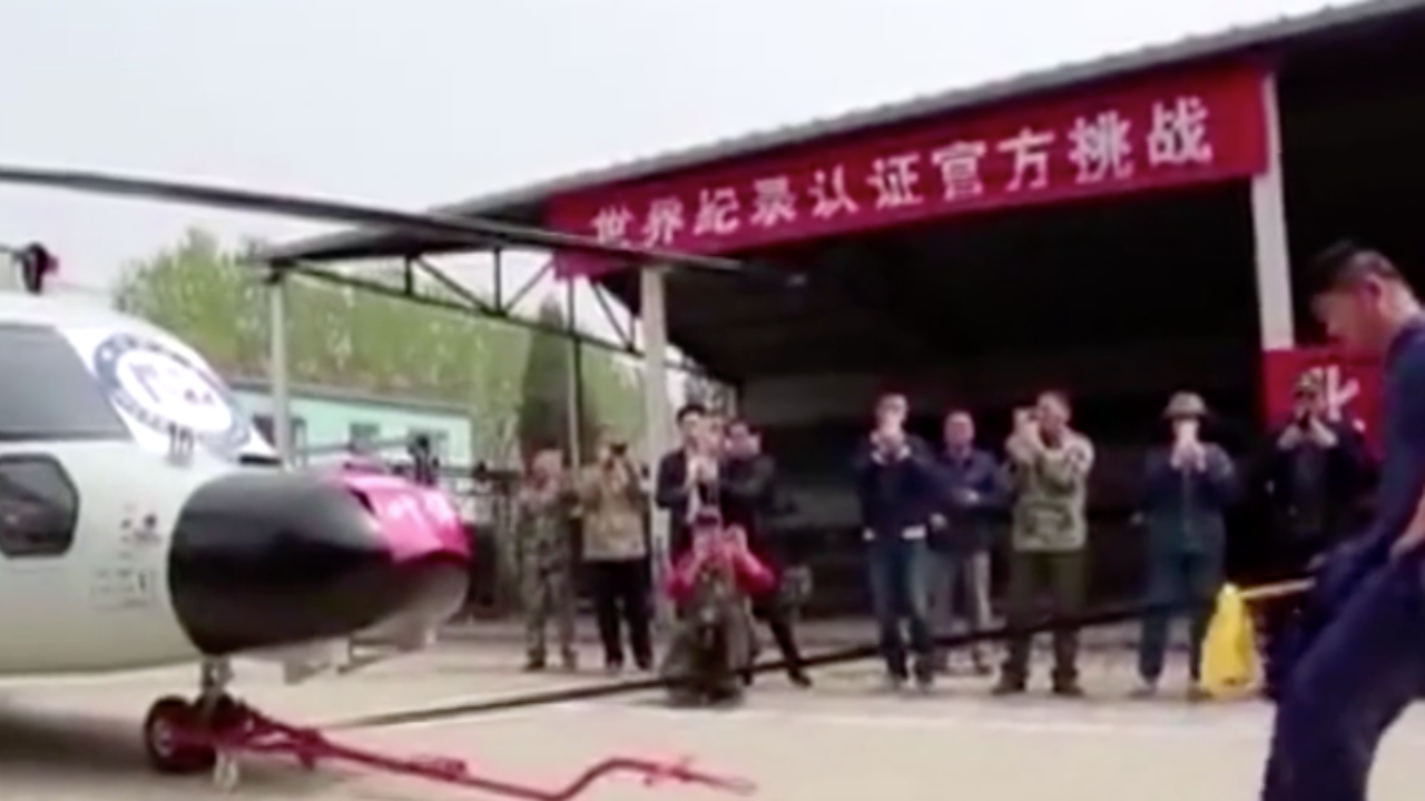 ฮึบ! ลุ้นสุดตัว..อาจารย์กังฟูชาวจีน โชว์สุดยอดความแข็งแกร่ง สร้างสถิติใหม่ ใช้เจ้าโลก ลากเฮลิคอปเตอร์ทหาร ขยับไกลได้นับ 10 เมตร จากเดิมที่ตั้งเป้าไว้ 8 เมตรเท่านั้น