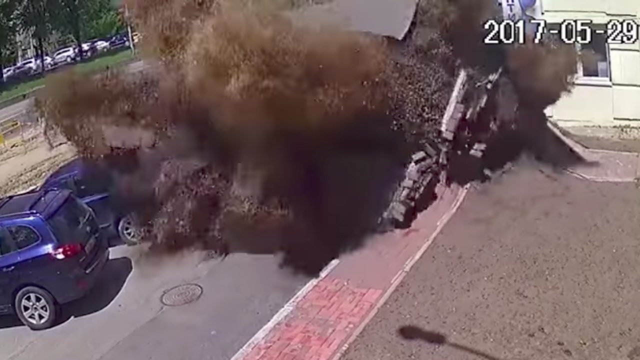 สำนักข่าวต่างประเทศรายงานว่า เกิดเหตุท่อประปาใต้ดินบนถนนสายหนึ่งในกรุงเคียฟ เมืองหลวงของประเทศยูเครนระเบิดแหวกพื้นถนนออกมาอย่างรุนแรง เมื่อช่วงบ่ายวันจันทร์ที่ 29 พ.ค. สร้างความเสียหายต่ออาคารในบริเวณนั้น โดยกล้องวงจรปิดสามารถบันทึกภาพเหตุการณ์ทั้งหมดเอาไว้ได้