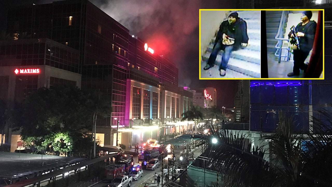 กาสิโนกลางกรุงมะนิลา ฟิลิปปินส์ ถูกคนร้าย (ภาพเล็ก) บุกเดี่ยวกราดยิงห้องเล่นพนัน ราดน้ำมันจุดไฟเผากวาดชิพพนันกว่า 100 ล้านเปโซใส่เป้ หนีไปเผาตัวตายหลังถูกตามล่า 5 ชม.คนในกาสิโนมีผู้สำลักควันเสียชีวิต 35 ศพ.