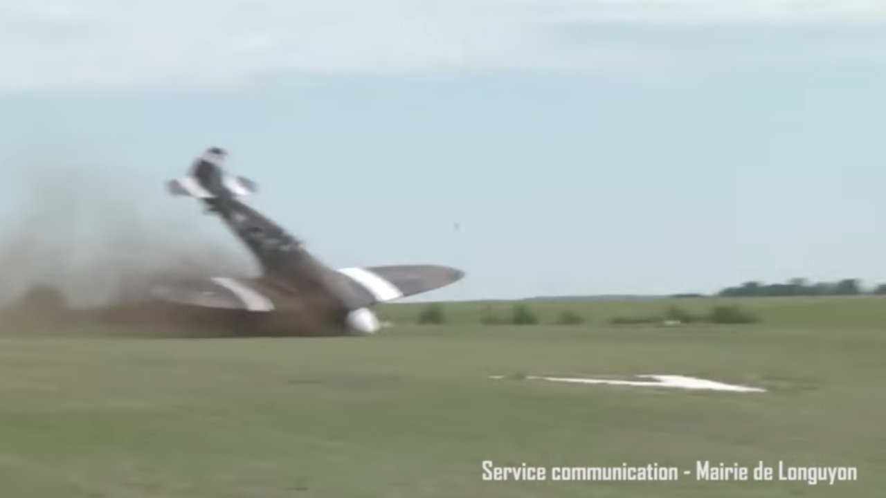 ภาพจากคลิปวิดีโอแสดงให้เห็นว่า ในขณะที่เครื่องบินยุคสงครามโลกครั้งที่ 2 ลำนี้กำลังจะขึ้นบิน ใบพัดไปชนกับพื้นทำให้เครื่องเสียการทรงตัวจนจมูกเครื่องบินปักพื้น และไถลเป็นระยะทางสั้นๆ ก่อนที่เครื่องจะพลิกหงายท้อง