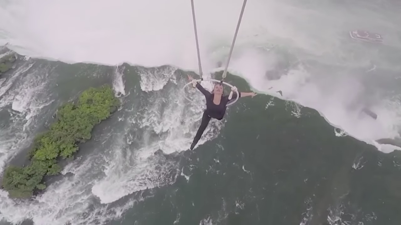 สำนักข่าวต่างประเทศรายงานว่า เอเรนดิรา วอลเลนดา นักกายกรรมสาวชาวเม็กซิโก วัย 36 ปี ทำสถิติโลกใหม่เมื่อวันพฤหัสบดีที่ผ่านมา หลังจากเธอห้อยตัวจากเฮลิคอปเตอร์ที่บินเหนือน้ำตกไนแอการาที่ความสูงประมาณ 300 ฟีต (ราว 91.4 ม.) ด้วยการกัดฟันยางเหล็ก ที่ติดอยู่กับห่วงสนับสนุน เพื่อความปลอดภัยตามกฎหมายรัฐนิวยอร์ก