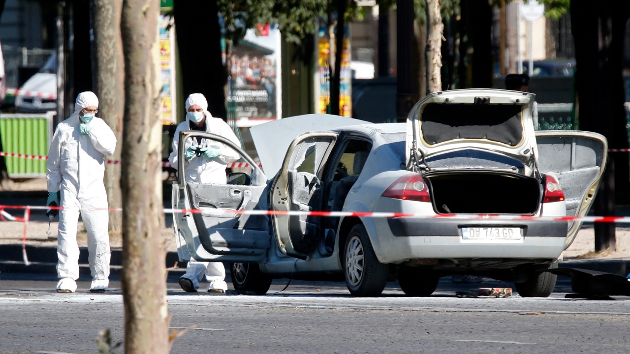 ด้านนายเชราร์ด กอลลอง รัฐมนตรีว่าการกระทรวงมหาดไทยฝรั่งเศส ระบุว่า รถยนต์ของคนร้ายพุ่งชนรถตู้นำขบวนรถตำรวจที่กำลังวิ่งอยู่บนถนนฌ็องเซลิเซ่ ใกล้กับหอจัดนิทรรศการ กร็องปาแล ส่วนนายปิแอร์-อองรี บรงเด ระบุว่า เกิดไฟลุกไหม้รถยนต์ของคนร้ายหลังก่อเหตุด้วย