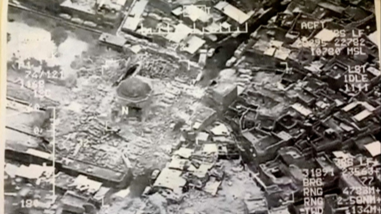 ภาพถ่ายทางอากาศที่เผยแพร่เมื่อวันพุธแสดงให้เห็นว่า พื้นที่เกือบทั้งหมดของมัสยิดแกรนด์ อัล-นูรี ถูกทำลายจนราบ โดยหอคอยเอนความสูง 45 ม. ซึ่งถูกเรียกว่า ‘อัล-ฮัดบา’ ก็ถูกทำลายลงด้วย เช่นเดียวกับบ้านเรือนโดยรอบ ขณะที่นายกรัฐมนตรี ไฮเดอร์ อัล-อาบาดี แห่งประเทศอิรัก ประกาศบนเว็บไซต์ของเขาว่า “การระเบิดหอ อัล-ฮัดบา และมัสยิด อัล-นูรี ถือเป็นการยอมรับความพ่ายแพ้อย่างเป็นทางการ”
