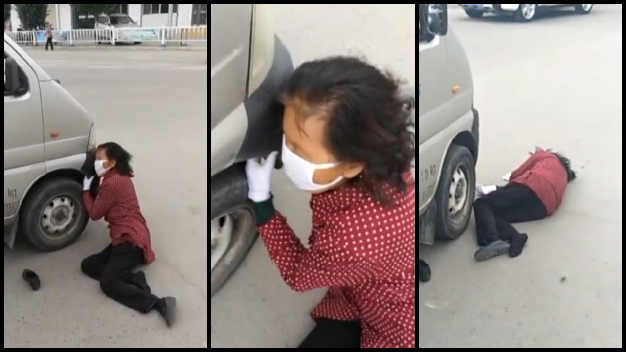 ชายคนหนึ่งในเขต เกาไท่ ทางตะวันตกเฉียงเหนือของประเทศจีน อ้างว่า ในขณะที่เขากำลังขับรถอยู่ หญิงวัยกลางคนคนหนึ่งที่ยืนอยู่ข้างทางก็พุ่งเข้ามาหารถของเขา ทำให้เขาต้องเหยียบเบรกทันที และหลีกเลี่ยงการชนผู้หญิงคนนี้ได้สำเร็จ แต่เหตุการณ์ไม่จบลงตรงนั้น เมื่อหญิงคนนี้กลับนั่งลงและเอาศีรษะโขกกับกันชนรถอย่างต่อเนื่อง