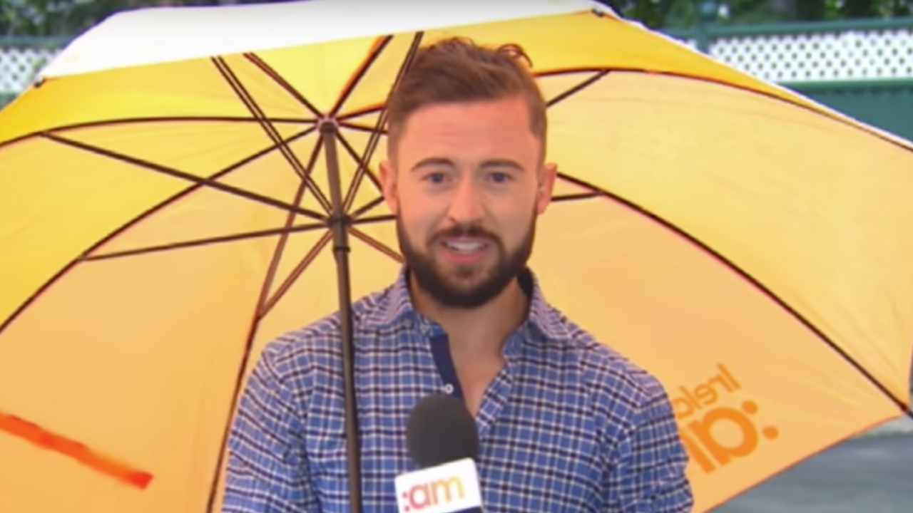 สำนักข่าวต่างประเทศรายงานว่า เดริค ฮาติแกน ผู้ประกาศข่าวสภาพอากาศของสถานีโทรทัศน์ ‘ทีวี3’ ของประเทศไอร์แลนด์ต้องเสียหน้าอย่างแรงระหว่างรายงานข่าวสภาพอากาศสดๆ ท่ามกลางสายฝนเมื่อช่วงเช้าวันศุกร์ที่ 23 มิ.ย. เมื่อเขาถูกลมกระโชกพัดไปพร้อมกับร่มของเขา