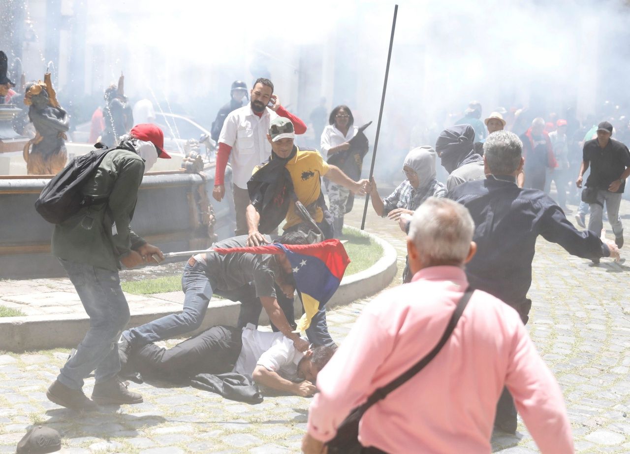 หนังสือพิมพ์ทัล คูอัล ของเวเนซุเอลา กล่าวโทษกลุ่ม ‘กอเลกติวอส’ (colectivos) กลุ่มคนติดอาวุธที่คัดเลือกโดยนายมาดูโร ว่าเป็นผู้ก่อเหตุความรุนแรงในครั้งนี้ ขณะที่มีการเผยแพร่ภาพที่เกิดเหตุมากมายลงบนโลกออนไลน์ บางภาพแสดงให้เห็นผู้บาดเจ็บอยู่ในสภาพเลือดอาบใบหน้า และมีภาพของชายที่เชื่อว่าคือ ส.ส. อเมริโก เด กราเซีย ถูกหามออกจากที่เกิดเหตุด้วยเปล