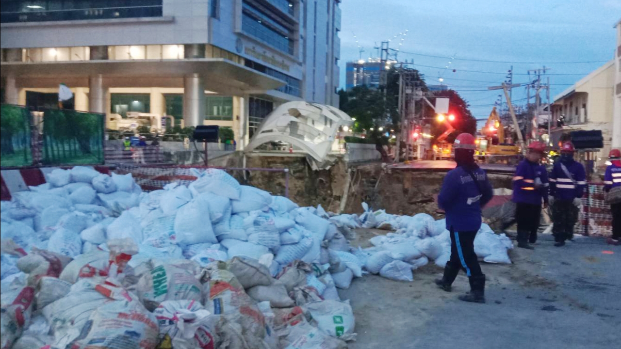 ล่าสุด ได้สั่งการให้ผู้รับจ้างงานโยธา CKST-PL JV เร่งดำเนินการถมดินกลับ โดยใช้กระสอบทรายและหินคลุก เพื่อหยุดการไหลของดินและน้ำใต้ดินเข้าสู่สถานีรถไฟฟ้า ลดการทรุดตัวของดินโดยรอบ รวมถึงเพิ่มเสถียรภาพของดินมากขึ้น ก่อนเข้าดำเนินงานก่อสร้างในขั้นตอนต่อไป รวมถึงมีการกั้นพื้นที่โดยรอบบริเวณหลุมที่มีการทรุดตัวเพื่อความปลอดภัยของประชาชน พร้อมทั้งใช้กระสอบทรายเสริมเป็นแนวกั้นไม่ให้น้ำฝนไหลลงไปหลุมยุบเพิ่มเติม