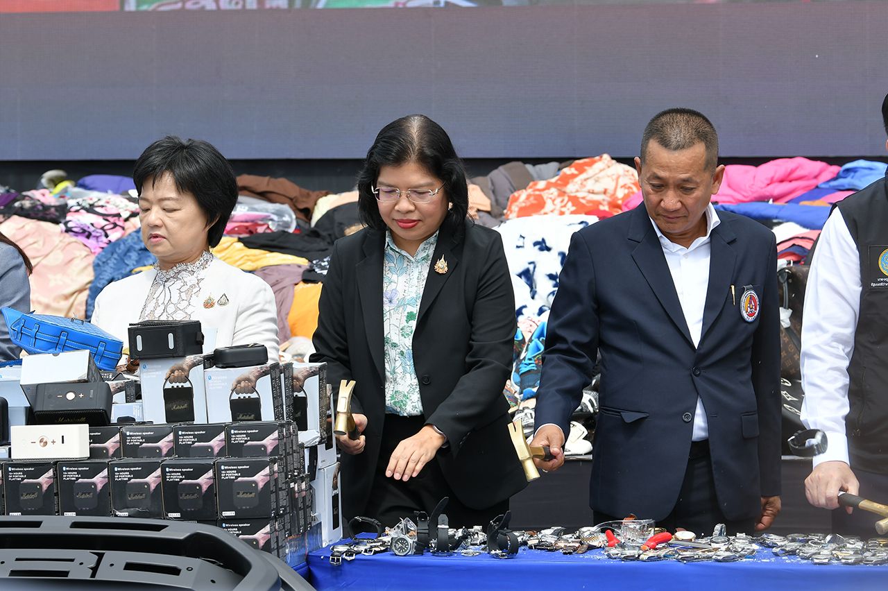 นางอรมน ทรัพย์ทวีธรรม อธิบดีกรมทรัพย์สินทางปัญญา เปิดเผยว่า กรมทรัพย์สินทางปัญญาร่วมกับกองบังคับการปราบปรามการกระทำความผิดเกี่ยวกับอาชญากรรมทางเศรษฐกิจ (ปอศ.) สำนักงานตำรวจแห่งชาติ และภาคเอกชนเจ้าของสิทธิ เดินหน้าตามแผนปฏิบัติการเร่งด่วนปราบปรามการละเมิดทรัพย์สินทางปัญญา โดยเฉพาะในแหล่งท่องเที่ยว ย่านการค้าสำคัญ และคลังเก็บสินค้า อย่างต่อเนื่อง เช่น ศูนย์การค้าแถวปทุมวัน โกดังแถวสมุทรสาคร โดยได้ตรวจค้นจับกุมแหล่งจำหน่าย โกดัง สถานที่เก็บสินค้าปลอมแบรนด์เนมที่มีชื่อเสียง พบสินค้า เช่น นาฬิกา แว่นตา เสื้อผ้า และเครื่องประดับ ที่จะนำไปจำหน่ายทั้งช่องทางออฟไลน์และออนไลน์ เพื่อคุ้มครองสิทธิของเจ้าของทรัพย์สินทางปัญญา และปกป้องผู้บริโภคจากอันตรายของสินค้าปลอมและการถูกหลอกลวงให้ซื้อสินค้าปลอมแบรนด์ดังและสินค้าด้อยคุณภาพ รวมทั้งป้องกันความเสียหายต่อระบบเศรษฐกิจ ช่วยส่งเสริมภาพลักษณ์อันดีของประเทศ ซึ่งเป็นปัจจัยสำคัญที่ส่งผลเชิงบวกต่อการประเมินสถานะการคุ้มครองทรัพย์สินทางปัญญาของไทยในเวทีสากล และส่งผลต่อเนื่องถึงความเชื่อมั่นของนักลงทุนต่างชาติที่สนใจขยายฐานการผลิตและการวิจัยพัฒนามายังไทย