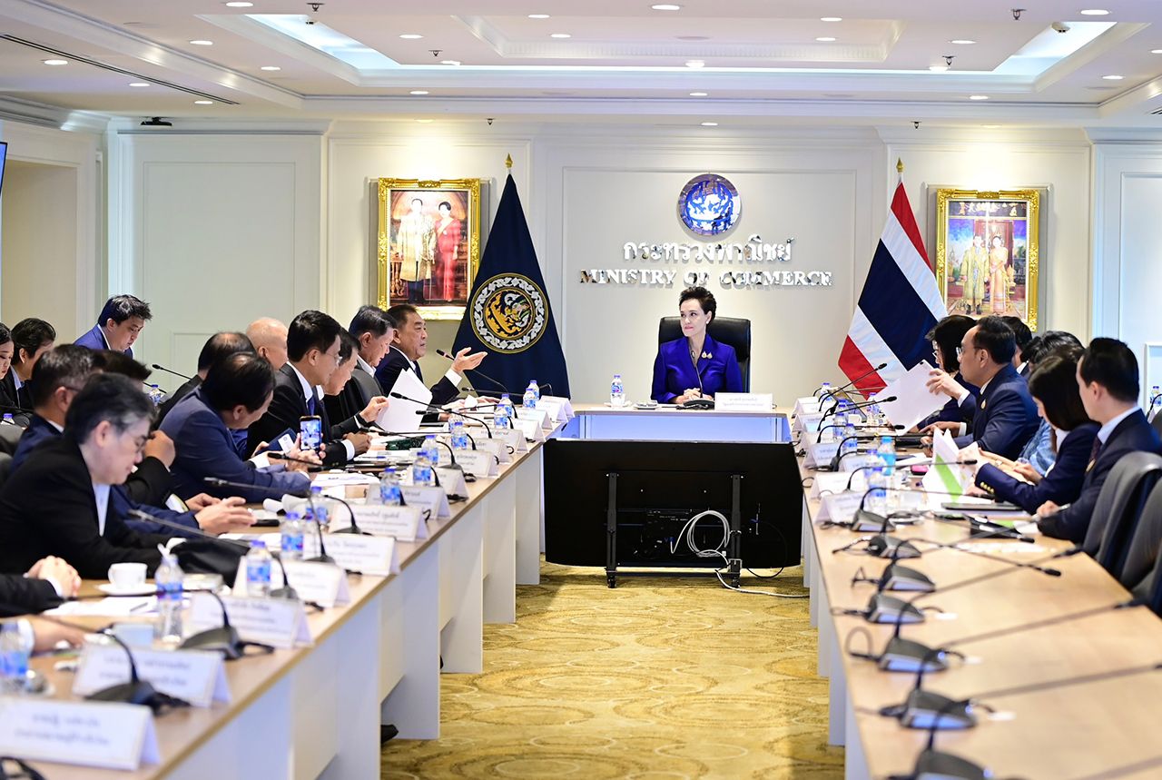 นางศุภจี สุธรรมพันธุ์ รัฐมนตรีว่าการกระทรวงพาณิชย์ พร้อมด้วยนายวุฒิไกร ลีวีระพันธุ์ ปลัดกระทรวงพาณิชย์ และคณะผู้บริหารกระทรวงพาณิชย์ หารือร่วมกับคณะกรรมการสภาหอการค้าแห่งประเทศไทย นำโดย ดร.พจน์ อร่ามวัฒนานนท์ ประธานกรรมการหอการค้าไทย ดร.ชนินทร์ ชลิศราพงศ์ รองประธานกรรมการหอการค้าไทย และผู้แทนภาคเอกชน ณ ห้องกิติยากรวรลักษณ์ ชั้น 4 สำนักงานปลัดกระทรวงพาณิชย์ เพื่อแลกเปลี่ยนแนวทางความร่วมมือในการรับมือกับมาตรการภาษีของสหรัฐอเมริกา (U.S. Tariff) เสริมสร้างความแข็งแกร่งให้ธุรกิจเกษตรของไทย ป้องกันสินค้าสวมสิทธิ์, ควบคุมสินค้านำเข้าไม่ได้มาตรฐาน และส่งเสริมการค้ากับตลาดใหม่ รวมทั้งการเตรียมความพร้อมผู้ประกอบการไทยต่อกฎระเบียบการค้าโลกที่เปลี่ยนแปลงอย่างรวดเร็ว และช่วยเหลือผู้ประกอบการในพื้นที่ชายแดนไทย–กัมพูชา