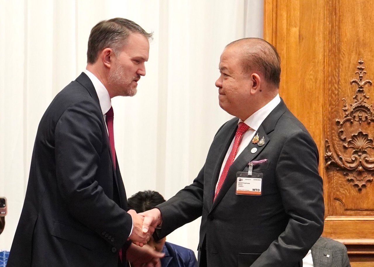 3. การเจรจาเขตการค้าเสรี (FTA) กับ สหภาพยุโรป (EU) ซึ่งตนได้ดำเนินการไว้แล้วและคาดหวังว่าจะจบได้ก่อนวันที่ 25 ธันวาคม 2568 ตามที่ได้ตกลงกันแล้วกับ Mr. Maros Sejkovic, EU commissioner on Trade ดังนั้นจึงอยากให้ทำให้สำเร็จได้ในเวลาที่กำหนด โดยก่อนหน้านี้ ตนสามารถจบการเจรจากับ EFTA (สวิส นอร์เวย์ ไอซ์แลนด์ ลิกเตนสไตน์) ในเวลาเพียง 2 เดือนครึ่ง (หลังจากที่เจรจาค้างมากว่า 10 ปี) และ สามารถไปเซ็น FTA กับ EFTA ได้ในวันที่ 23 มกราคม 2568 ที่กรุงดาวอส ประเทศสวิตเซอร์แลนด์ ระหว่างการประชุม WEF และ ต่อมาในวันที่ 4 เมษายน ได้เซ็น FTA กับประเทศภูฏาน ที่กรุงเทพฯ ระหว่างการประชุม Bimstec