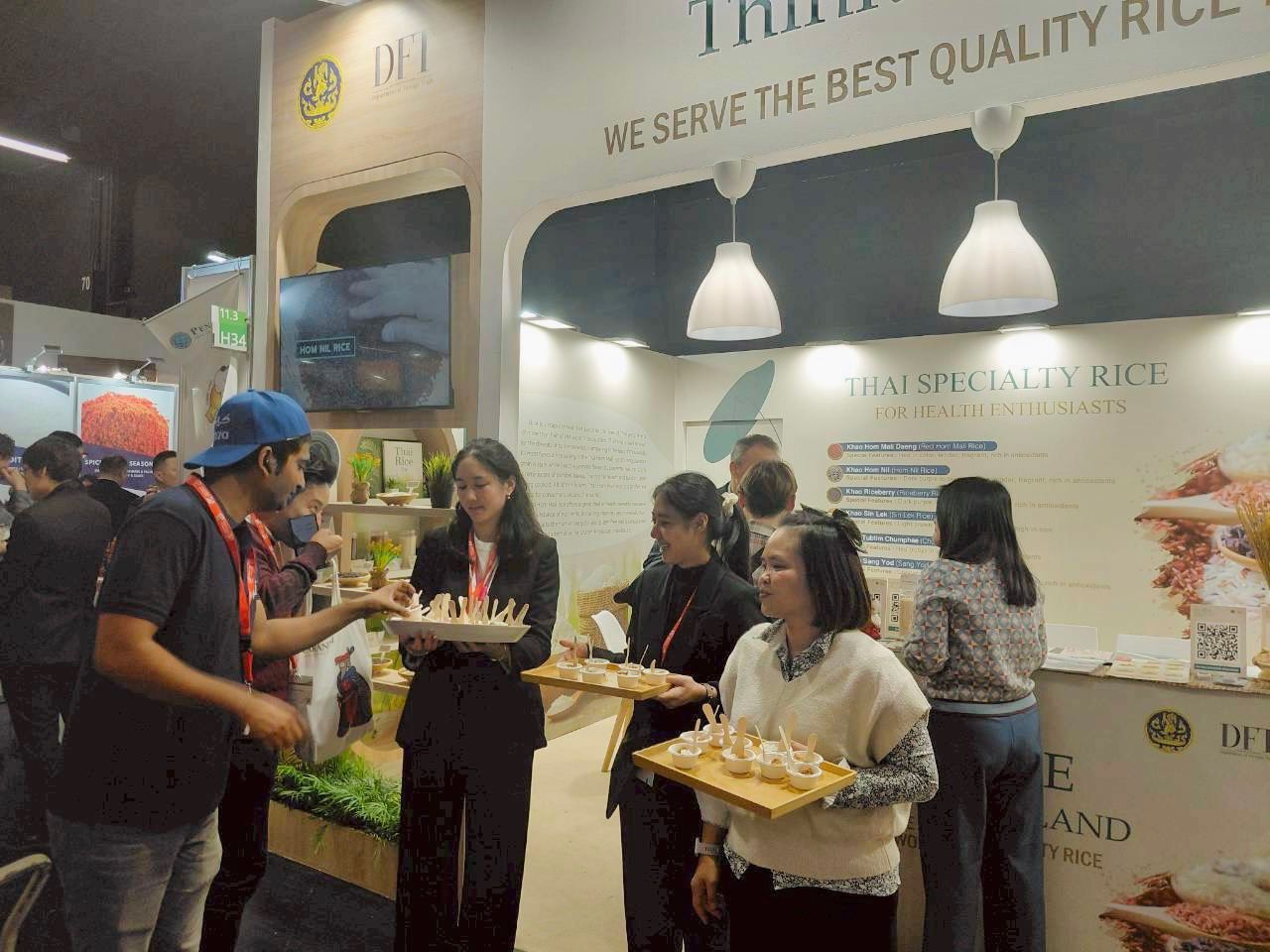 “กระทรวงพาณิชย์มุ่งผลักดันให้ข้าวไทยคงความเป็นผู้นำในตลาดโลก ทั้งด้านคุณภาพ มาตรฐาน และความโดดเด่น โดยเฉพาะข้าวหอมมะลิไทย ที่ได้รับการยอมรับว่าเป็นข้าวคุณภาพเยี่ยมระดับโลก โดยตลาดยุโรป เป็นตลาดศักยภาพของข้าวไทย เพราะผู้บริโภคให้ความสำคัญกับคุณภาพ ความปลอดภัย และความยั่งยืน ซึ่งข้าวไทยตอบโจทย์ได้อย่างครบถ้วน การเข้าร่วมงานครั้งนี้จะช่วยสร้างความเชื่อมั่นให้ผู้นำเข้า ผู้ซื้อ คู่ค้า และผู้บริโภคในยุโรป มั่นใจว่า ข้าวไทย คือ สินค้าที่มีคุณภาพ มาตรฐาน และปลอดภัย นอกจากนี้ การส่งเสริมข้าวไทยในตลาดยุโรป ยังเป็นการผลักดันให้ข้าวคุณภาพสูงของไทยเป็นที่ต้องการมากขึ้น อันจะนำไปสู่การพัฒนาผลผลิต การสร้างมูลค่าเพิ่ม และรายได้ที่มั่นคงในระยะยาวต่อไป”