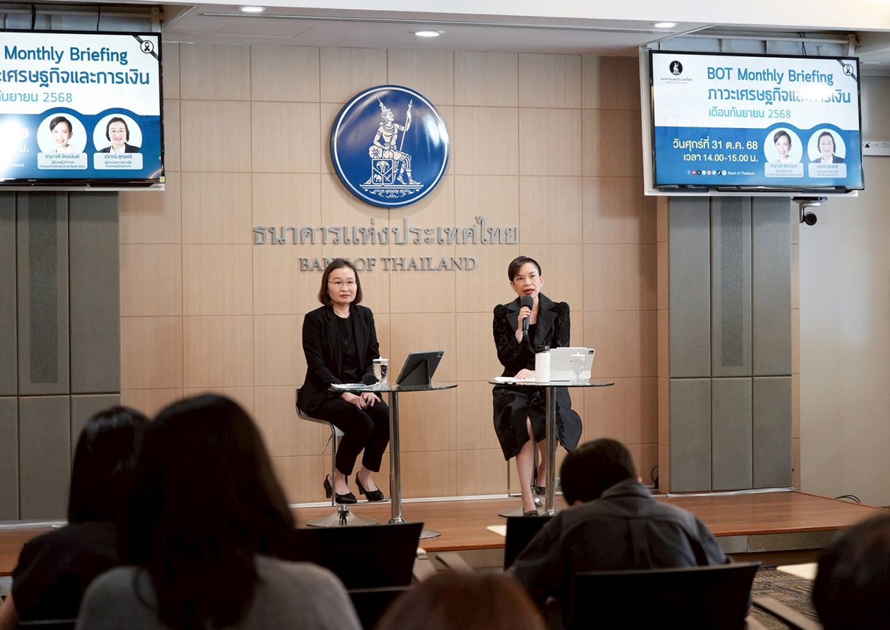 นางสาวชญาวดี ชัยอนันต์ ผู้ช่วยผู้ว่าการ สายองค์กรสัมพันธ์ และโฆษกธนาคารแห่งประเทศไทย หรือ ธปท. และนางสาวปราณี สุทธศรี ผู้อำนวยการอาวุโส ฝ่ายเศรษฐกิจมหภาค ธปท. แถลงภาวะเศรษฐกิจและการเงิน ไตรมาส 3 และเดือนกันยายน 2568 ระบุภาพรวมเศรษฐกิจไทยในไตรมาสที่ 3 ชะลอตัวลงจากไตรมาสก่อนหน้า จากการผลิตภาคอุตสาหกรรมที่ลดลง เนื่องจากบางสินค้าหยุดการผลิตชั่วคราว ส่งผลให้กิจกรรมในภาคบริการที่เกี่ยวข้องปรับลดลงไปด้วย ประกอบกับการลงทุนในภาคเอกชน ก็ลดลง -1.0% และรายรับนักท่องเที่ยวต่างชาติลดลง -0.5% ขณะที่การส่งออกสินค้าเพิ่มขึ้นจากหมวดอิเล็กทรอนิกส์ 0.7%