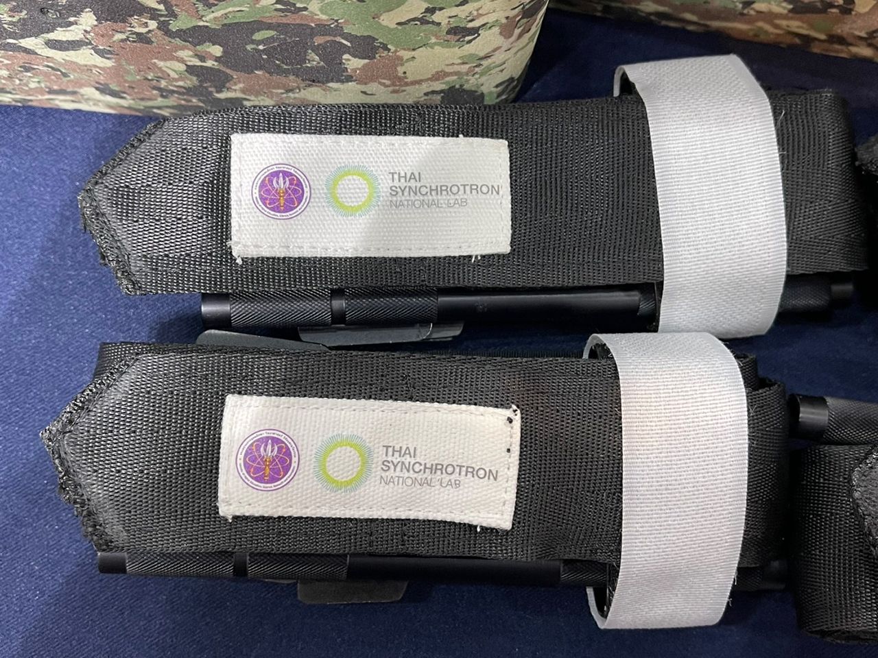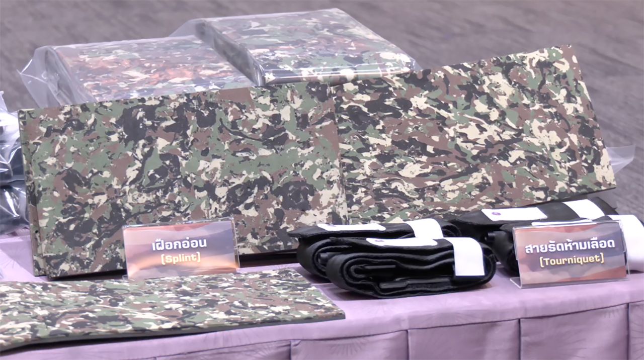 สายรัดห้ามเลือดแบบก้านหมุน ออกแบบเพื่อควบคุมภาวะเลือดออกรุนแรงบริเวณแขนหรือขา ซึ่งเป็นสาเหตุหลักของการเสียชีวิตในสนามรบ ผลการทดสอบพบว่าสามารถสร้างแรงกดได้คงที่และต่อเนื่องนาน 5–6 ชั่วโมงโดยไม่คลายตัว ส่วน เฝือกอ่อน ผลิตจากวัสดุอะลูมิเนียมอัลลอยด์ผ่านกระบวนการอบอ่อน ด้วยเทคโนโลยีซินโครตรอน ทำให้มีความยืดหยุ่นสูง ดัดเข้ากับสรีระได้อย่างมั่นคง อีกทั้งยังเป็นวัสดุโปร่งแสงรังสี ช่วยให้สามารถเอกซเรย์ผู้บาดเจ็บได้โดยไม่ต้องถอดเฝือก.