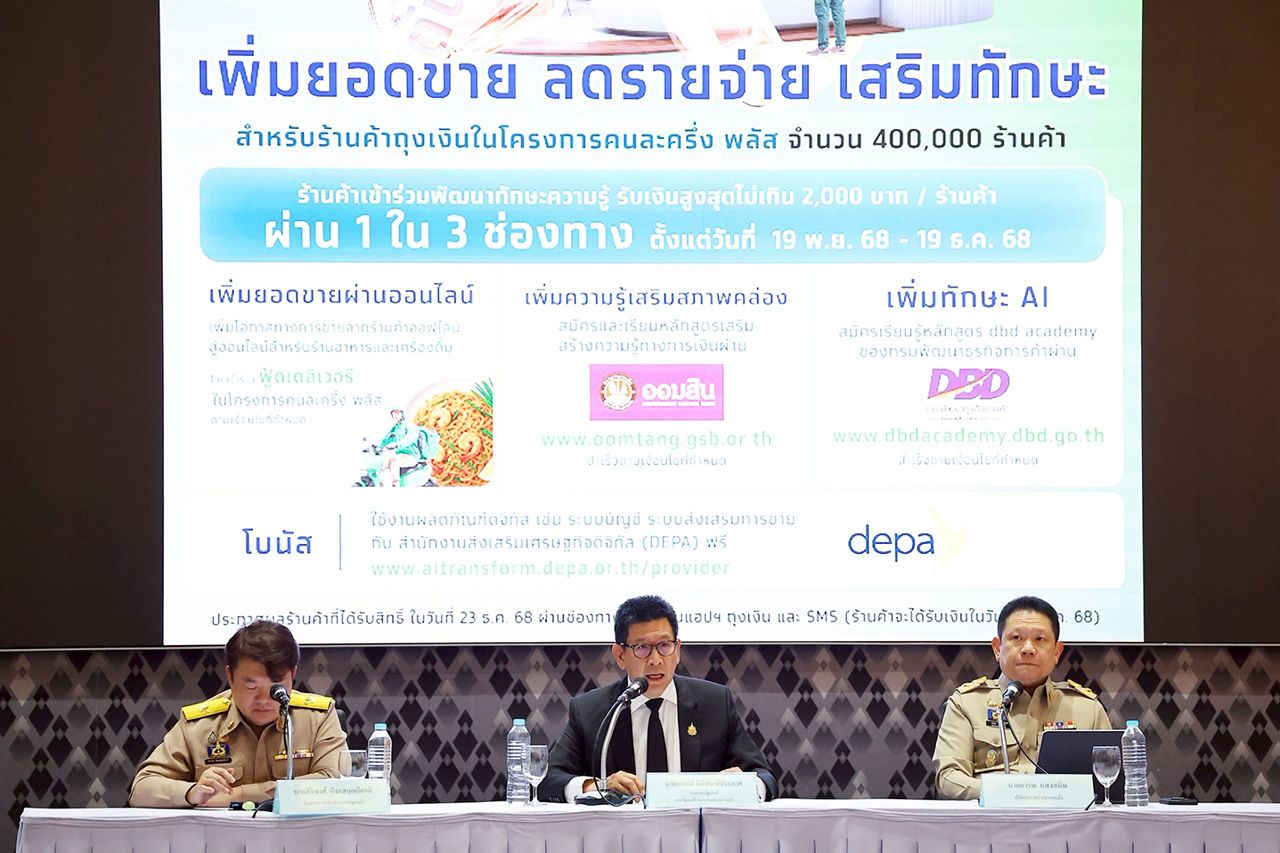 นายเอกนิติ นิติทัณฑ์ประภาศ รองนายกรัฐมนตรีและรมว.คลัง กล่าวว่า ที่ประชุมคณะกรรมการนโยบายเศรษฐกิจ (ครม.เศรษฐกิจ) ที่มีนายอนุทิน ชาญวีรกูล นายกรัฐมนตรีและรมว.มหาดไทย เป็นประธาน เมื่อวันที่ 10 พ.ย. 2568 ได้เห็นชอบ โครงการพัฒนาความรู้ทักษะ (Upskill) หรือเรียนรู้ทักษะใหม่ (Reskill) สำหรับร้านค้าที่เข้าร่วมโครงการคนละครึ่งพลัส นับเป็นโครงการคนละครึ่งพลัส เฟส 1.5 เพื่อยกระดับศักยภาพร้านค้ารายย่อยให้สามารถปรับตัวสู่เศรษฐกิจดิจิทัลได้อย่างยั่งยืน มีเป้าหมายร้านค้าเข้าร่วม 400,000 ราย จากปัจจุบันที่มีร้านค้าลงทะเบียนในโครงการคนละครึ่ง พลัส 858,991 ราย ในจำนวนนี้มีร้านค้าประเภทอาหารและเครื่องดื่มที่ลงทะเบียนกับผู้ให้บริการระบบขนส่งอาหาร (Food Delivery Platform) ซึ่งประกอบด้วย แกร็บ ไลน์แมน โรบินฮู้ด และช็อปปี้ฟู้ด อยู่แล้ว 58,947 ราย คิดเป็น 6.86% ของร้านค้าที่เข้าร่วมโครงการคนละครึ่ง พลัส ทั้งหมด
