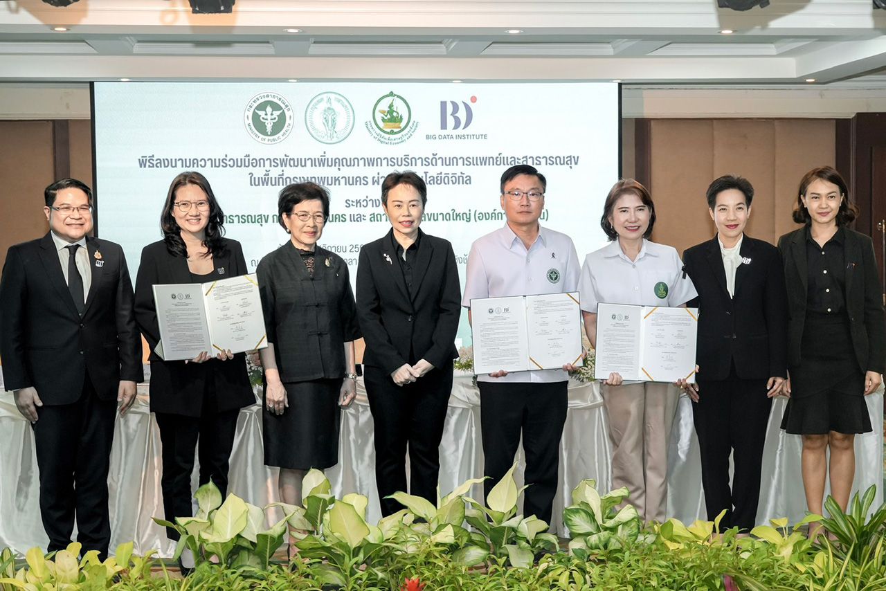 รศ. ดร.ทวิดา กมลเวชช รองผู้ว่าราชการกรุงเทพมหานคร กล่าวว่า กรุงเทพมหานครมีภารกิจสำคัญในการดูแลคุณภาพชีวิตของประชาชนในทุกมิติ โดยเฉพาะด้านสาธารณสุข ซึ่งเป็นบริการที่เกี่ยวข้องโดยตรงกับประชาชนจำนวนมาก ความร่วมมือในวันนี้จะเป็นก้าวสำคัญในการบูรณาการระบบบริการของกรุงเทพมหานคร กับ กระทรวงสาธารณสุขผ่านเทคโนโลยีดิจิทัลที่ทันสมัย เพื่อให้ประชาชนในพื้นที่กรุงเทพมหานครสามารถเข้าถึงบริการ ทางการแพทย์ได้อย่างสะดวก รวดเร็ว และต่อเนื่องมากยิ่งขึ้น ด้วยการเชื่อมโยงข้อมูลสุขภาพผ่าน Digital Health Platform ที่กำหนด ซึ่งจะช่วยให้บุคลากรทางการแพทย์ทุกสังกัด สามารถเข้าถึงข้อมูลสุขภาพของผู้ป่วยได้อย่างครบถ้วน ลดขั้นตอน ลดความซ้ำซ้อน และทำให้การดูแลรักษาเกิดความต่อเนื่อง สอดคล้องกับนโยบายของกระทรวงสาธารณสุข ในการขับเคลื่อนประเทศไทยสู่ยุค Digital Health Transformation ในฐานะเมืองหลวงของประเทศ กรุงเทพมหานครพร้อมทำงานร่วมกับกระทรวงสาธารณสุข และกระทรวงดิจิทัลเพื่อเศรษฐกิจและสังคม โดยสถาบันข้อมูลขนาดใหญ่ (องค์การมหาชน) เพื่อขับเคลื่อนการพัฒนาระบบสุขภาพเมือง ให้เป็นต้นแบบของ Smart Health City ที่ทุกคนสามารถเข้าถึงบริการสุขภาพที่มีคุณภาพ เท่าเทียม และปลอดภัย เชื่อมั่นว่าความร่วมมือในวันนี้ไม่ใช่เพียง การลงนามในเอกสาร แต่เป็นการลงมือร่วมกันเพื่อสร้างระบบสุขภาพที่เชื่อมโยงทุกภาคส่วนเข้าด้วยกัน และสร้างประโยชน์อย่างแท้จริงให้แก่ประชาชนชาวกรุงเทพมหานครและคนไทยทุกคน