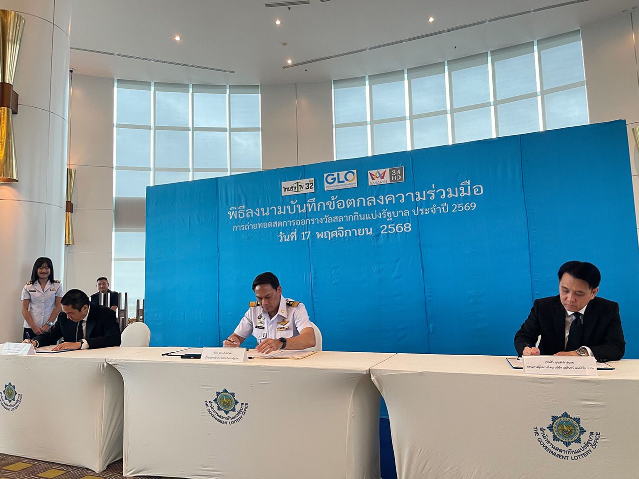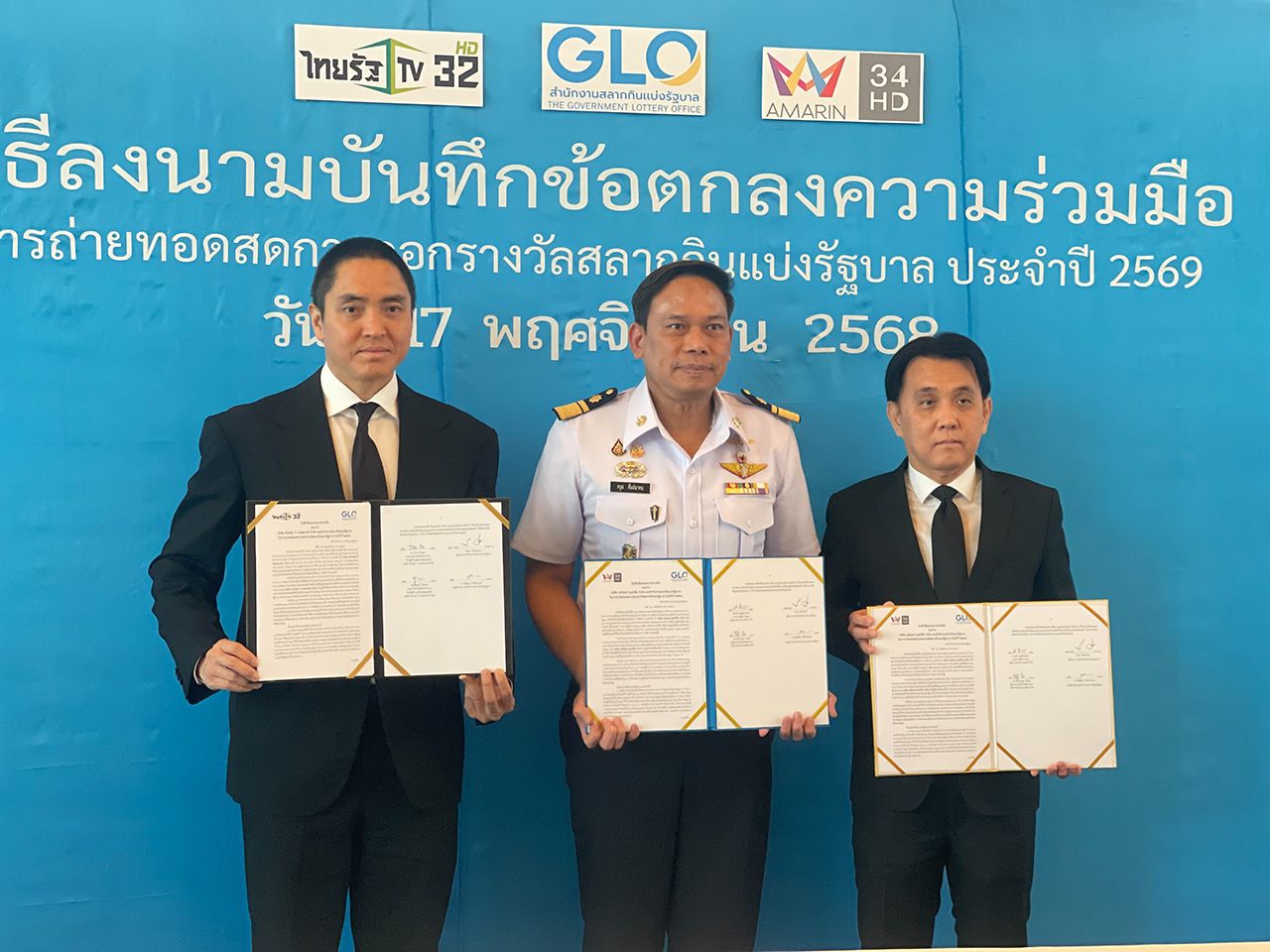 17 พ.ย. 2568 สำนักงานสลากกินแบ่งรัฐบาล (GLO) จัดพิธีลงนามความร่วมมือกับ บริษัท ทริปเปิล วี บรอดคาสท์ จำกัด (ไทยรัฐทีวี ช่อง 32) และบริษัท อมรินทร์ เทเลวิชั่น จำกัด (สถานีโทรทัศน์อมรินทร์ทีวี เอชดี ช่อง 34) ในการถ่ายทอดสดการออกรางวัลสลากกินแบ่งรัฐบาล ประจำปี 2569 ตั้งแต่งวดวันที่ 2 มกราคม 2569 ถึง 16 ธันวาคม 2569 รวมทั้งสิ้น 24 งวด