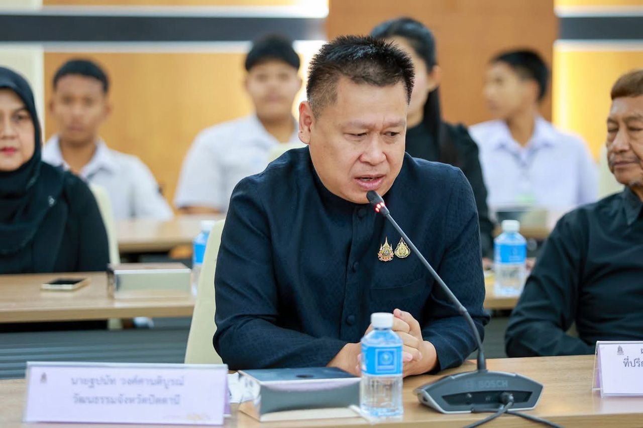วันที่ 20 พฤศจิกายน 2568 เวลา 10.30 น. คณะเยาวชนชมรมโขนชายแดนใต้ เข้าพบ นางสาวซาบีดา ไทยเศรษฐ์ รัฐมนตรีว่าการกระทรวงวัฒนธรรม เพื่อหารือแนวทางส่งเสริม สืบสาน และอนุรักษ์ศิลปะการแสดงโขน อันเป็นมรดกทางวัฒนธรรมไทยที่ทรงคุณค่า โดยมี นายไชยพร นิยมแก้ว รองผู้ว่าราชการจังหวัดปัตตานี นางยุถิกา อิศรางกูร ณ อยุธยา อธิบดีกรมส่งเสริมวัฒนธรรม นางสาวเพชรรัตน์ สายทอง หัวหน้าผู้ตรวจราชการกระทรวงวัฒนธรรม นายฐปนัท วงศ์ศานติบูรณ์ วัฒนธรรมจังหวัดปัตตานี คณะครูอาจารย์ เยาวชนจาก 3 จังหวัดชายแดนใต้ และเจ้าหน้าที่ที่เกี่ยวข้อง เข้าร่วม ณ ศูนย์ประชุมกระทรวงวัฒนธรรม ชั้น 8 อาคารวัฒนธรรมวิศิษฏ์ กระทรวงวัฒนธรรม