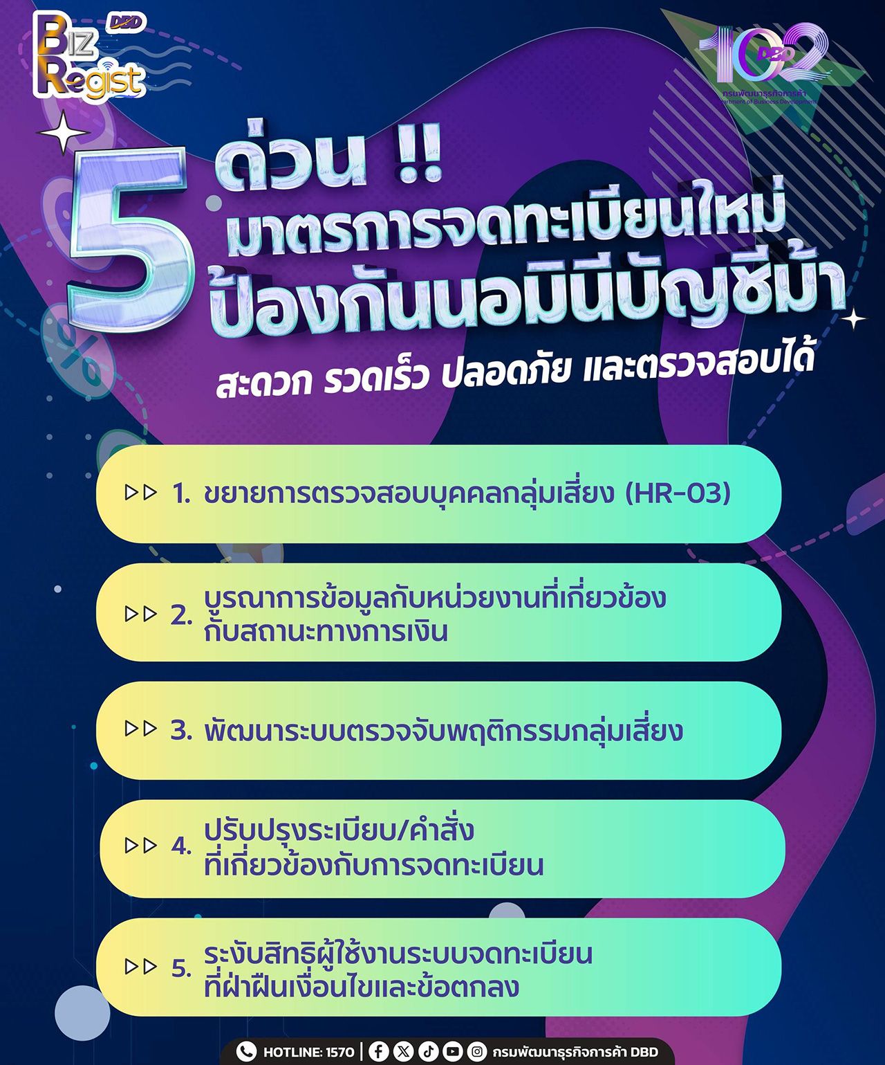 นอกจากนี้ เพื่อเป็นการป้องกันและสกัดปัญหานอมินีและบัญชีม้า ทางกรมฯ ได้ออก 5 มาตรการจดทะเบียนใหม่ ได้แก่