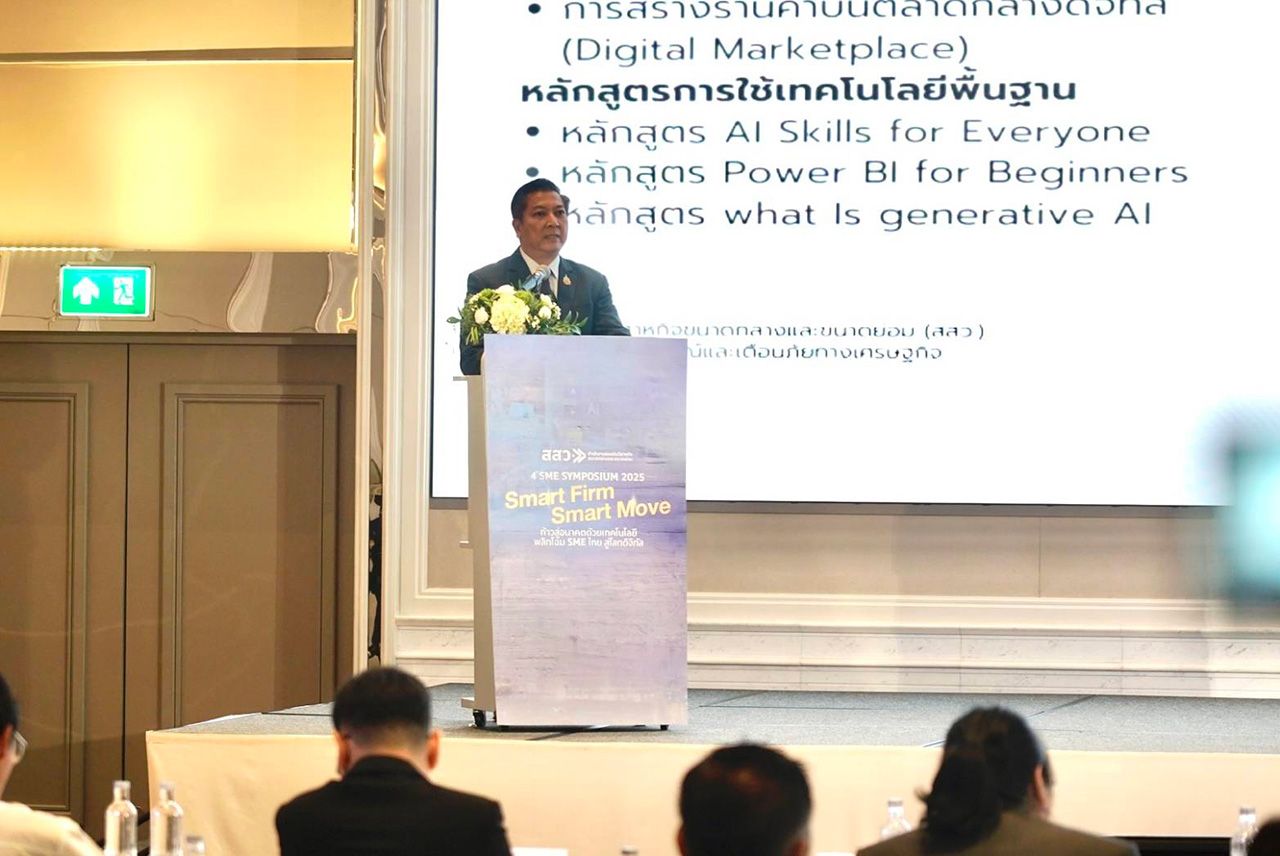 นางสาวปณิตา ชินวัตร รองผู้อำนวยการ รักษาการผู้อำนวยการสำนักงานส่งเสริมวิสาหกิจขนาดกลางและขนาดย่อม เปิดเผยภาพรวมสถานการณ์ SME ประจำปี 2568 และให้ข้อมูลในเรื่องกลุ่มธุรกิจดาวรุ่งและกลุ่มธุรกิจที่ต้องเฝ้าระวัง ภายในงานสัมมนาวิชาการ “SME Symposium 2025” ภายใต้หัวข้อ “Smart Firm Smart Move ก้าวสู่อนาคตด้วยเทคโนโลยี พลิกโฉม SME ไทย สู่โลกดิจิทัล” ซึ่งจัดขึ้นต่อเนื่องเป็นปีที่ 4 โดยในปีนี้มุ่งกระตุ้นให้ SME ได้มีการปรับใช้เทคโนโลยีและดิจิทัลให้มากขึ้นเพื่อเสริมสร้างขีดความสามารถในการแข่งขัน