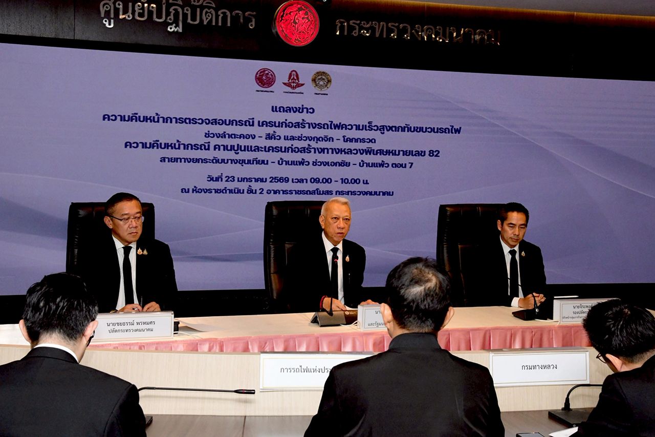 23 ม.ค. 69 นายพิพัฒน์ รัชกิจประการ รองนายกรัฐมนตรี และ รมว.คมนาคม พร้อมด้วย นายชยธรรม์ พรหมศร ปลัดกระทรวงคมนาคม, นายจิระพงศ์ เทพพิทักษ์ รองปลัดกระทรวงคมนาคม ในฐานะประธานคณะกรรมการสอบสวนข้อเท็จจริงกรณีเครนของโครงการรถไฟความเร็วสูง (ไฮสปีดไทย-จีน) ในสัญญา 3-4 หล่นใส่รถไฟที่ อ.สีคิ้ว และ กรณีเครนในโครงการทางหลวงพิเศษระหว่างเมือง (มอเตอร์เวย์) บางขุนเทียน-บ้านแพ้ว หล่นใส่รถที่ถนนพระราม 2 พร้อมด้วย นายปิยพงษ์ จิวัฒนกุลไพศาล อธิบดีกรมทางหลวง นายอนันต์ โพธิ์นิ่มแดง รองผู้ว่าการรถไฟแห่งประเทศไทย รักษาการในตำแหน่งผู้ว่าการรถไฟแห่งประเทศไทย (รฟท.) และผู้บริหารในสังกัดกระทรวงคมนาคม เข้าร่วมแถลงข่าวถึงผลสอบสวนข้อเท็จจริงทั้ง 2 กรณี