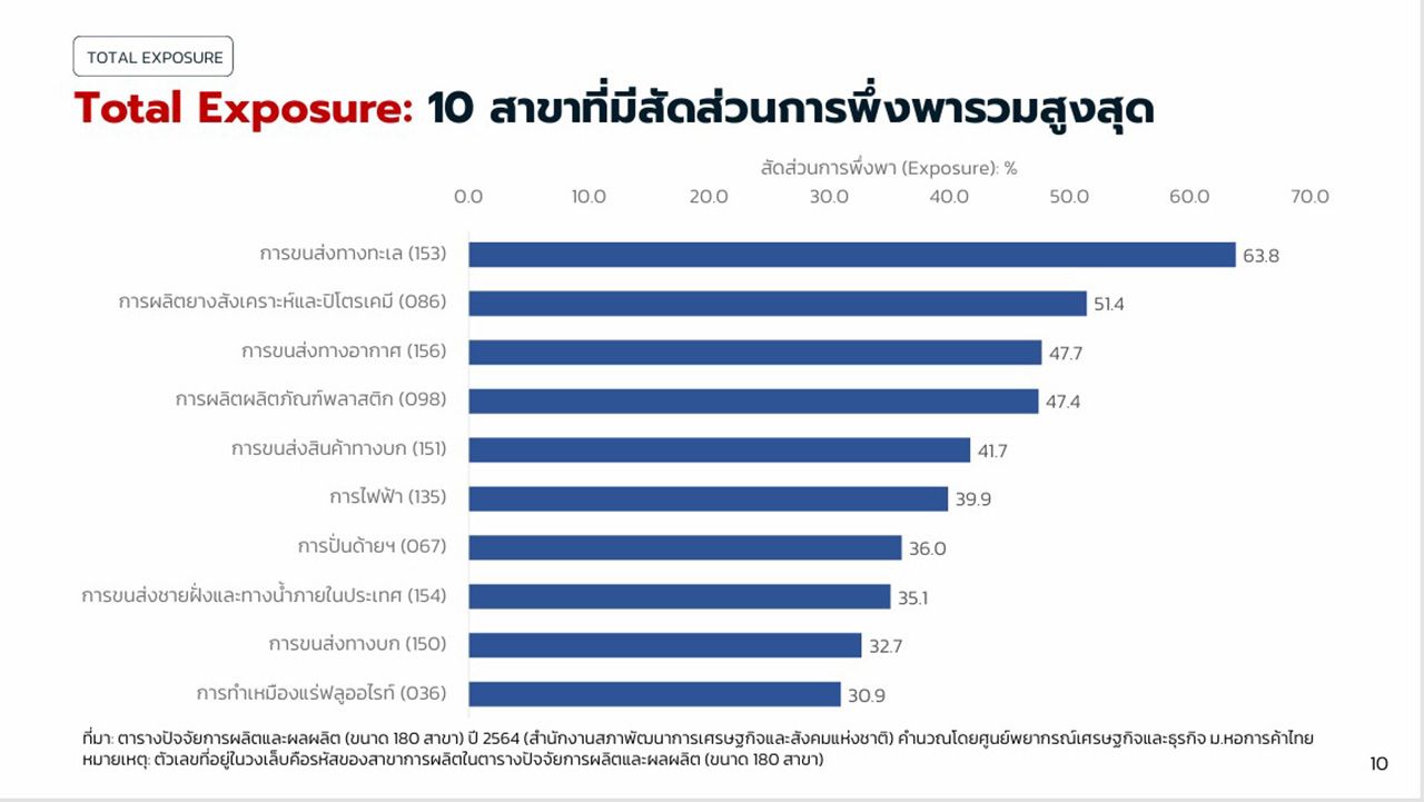 ภาคธุรกิจที่จะได้รับผลกระทบมากที่สุดเพราะพึ่งพาการใช้น้ำมันดีเซลมากที่สุด 10 อันดับแรก ได้แก่
