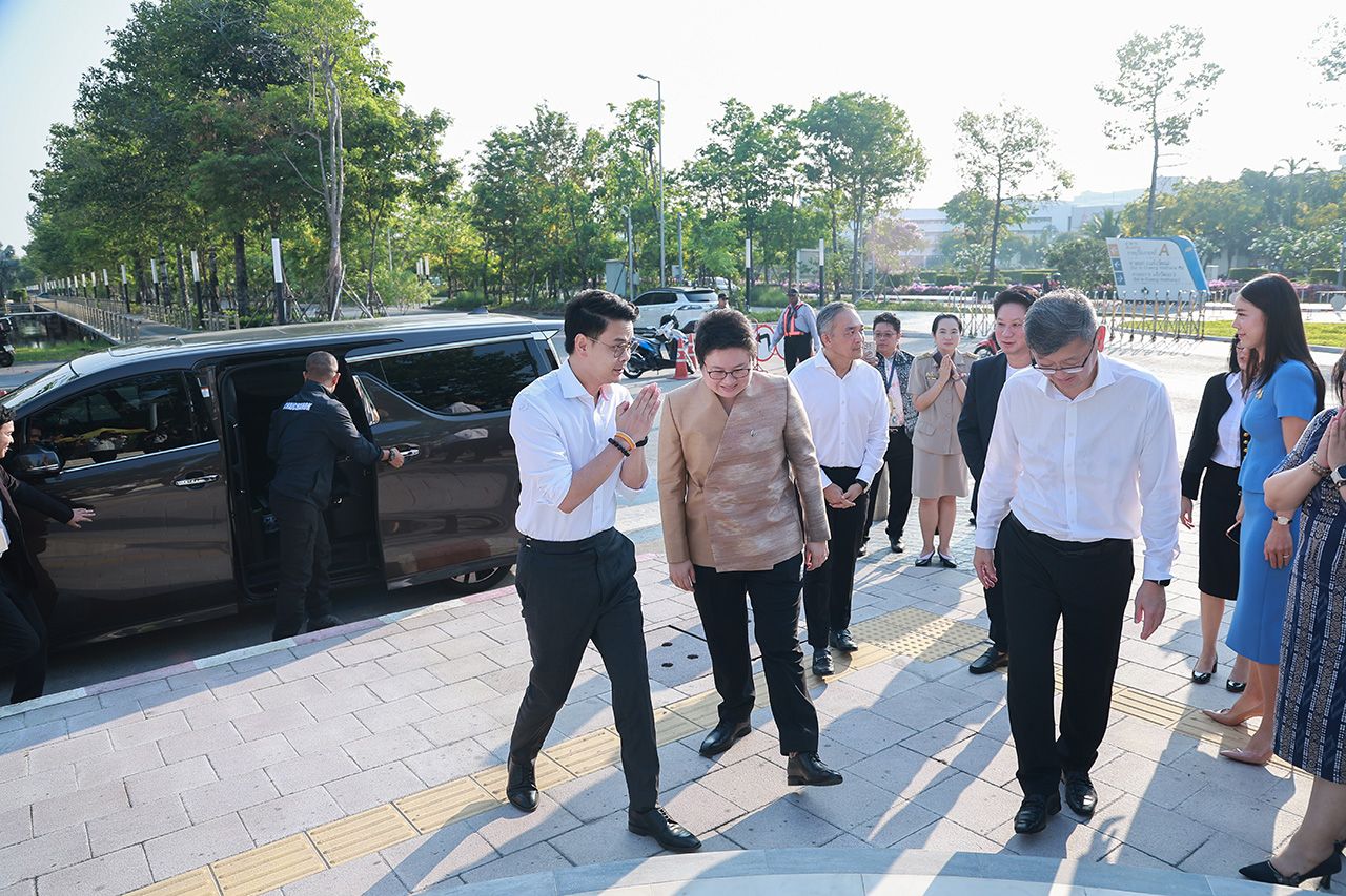 วันที่ 7 เมษายน 2569 นายไชยชนก ชิดชอบ รมว.ดิจิทัลเพื่อเศรษฐกิจและสังคม (ดีอี) และ นางสาวแนน บุณย์ธิดา สมชัย รมช.ดีอี ได้เดินทางเข้าสักการะศาลพระพรหม แยกอาคารศูนย์ราชการเฉลิมพระเกียรติฯ อาคารบี ถนนแจ้งวัฒนะ เพื่อความเป็นสิริมงคลในโอกาสเข้ารับตำแหน่ง จากนั้นได้เดินทางเข้ากระทรวงดีอี ซึ่งอยู่ในบริเวณใกล้เคียง ก่อนทั้งคู่เดินทางออกไปในเวลาไม่นานจากนั้น