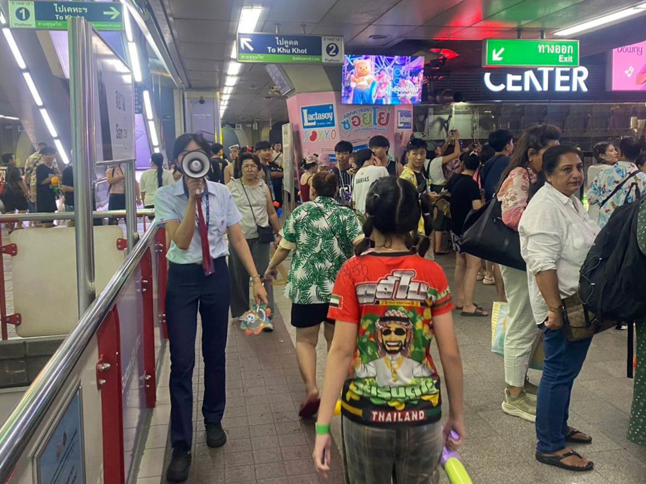 บรรยากาศการเดินทางในเขตกรุงเทพมหานครและปริมณฑลเต็มไปด้วยความคึกคัก มีผู้ใช้บริการระบบรถไฟฟ้าสูงถึง 1,128,070 คน-เที่ยว เพิ่มขึ้นร้อยละ 11.21 เมื่อเทียบกับช่วงเดียวกันของปีที่ผ่านมา โดยสถานีที่เป็นจุดเชื่อมต่อไปยังแลนด์มาร์กสำคัญในการเล่นน้ำสงกรานต์มีผู้ใช้บริการหนาแน่นเป็นพิเศษ