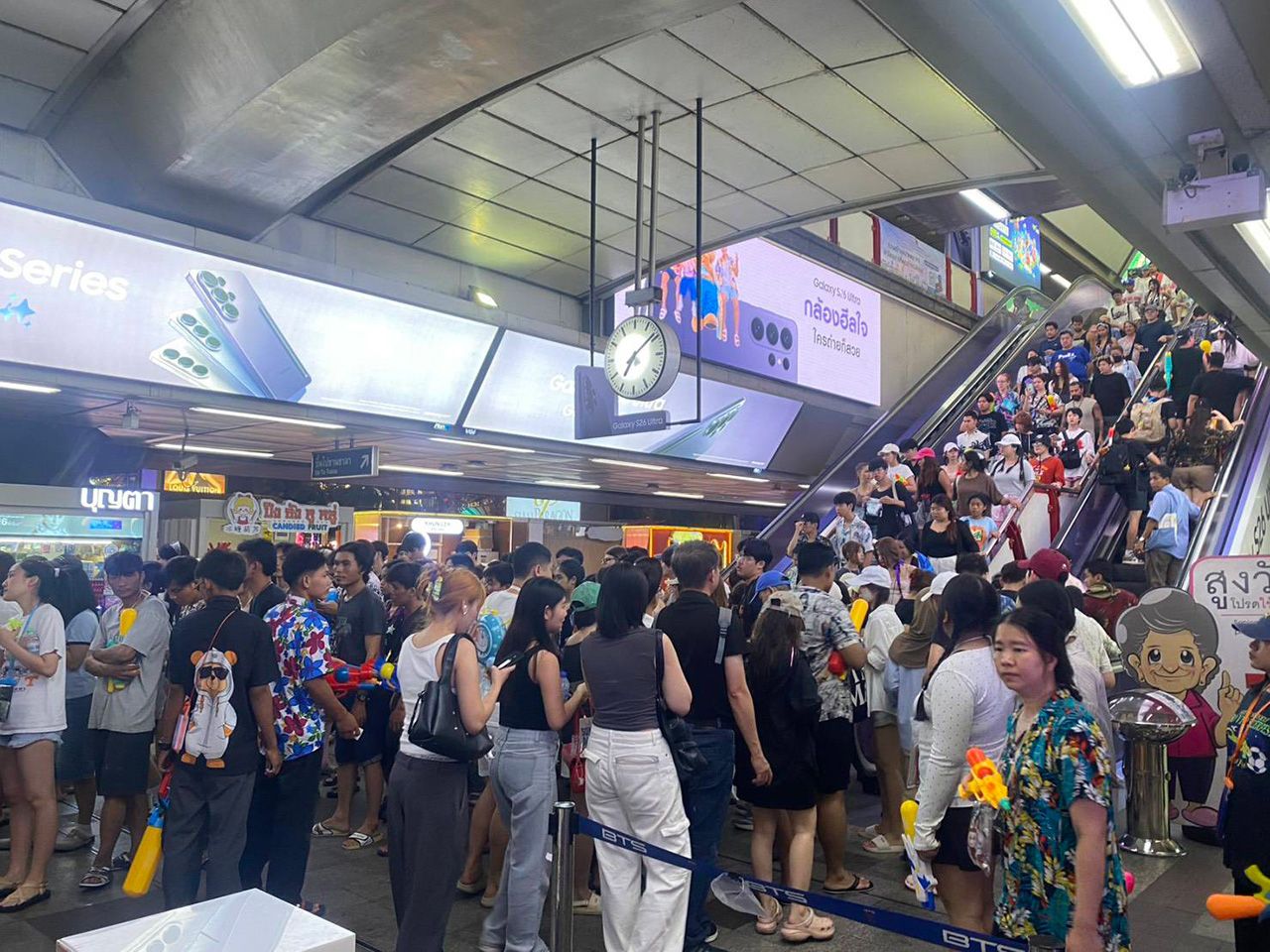 ด้านระบบรถไฟฟ้าในเขตเมือง มีผู้ใช้บริการรวม 967,046 คน-เที่ยว สูงกว่าประมาณการ 6.58% บรรยากาศตามสถานีต่าง ๆ หนาแน่นจาก 2 ปัจจัยหลัก คือ กลุ่มประชาชนที่ใช้รถไฟฟ้าเพื่อเดินทางต่อกลับที่พัก และกลุ่มผู้ที่เดินทางไปร่วมงานเล่นน้ำส่งท้ายเทศกาล โดยสายสีเขียวมีผู้ใช้บริการสูงสุดถึง 489,129 คน-เที่ยว รองลงมาคือ สายสีน้ำเงิน 275,981 คน-เที่ยว และ แอร์พอร์ต เรล ลิงก์ 54,406 คน-เที่ยว