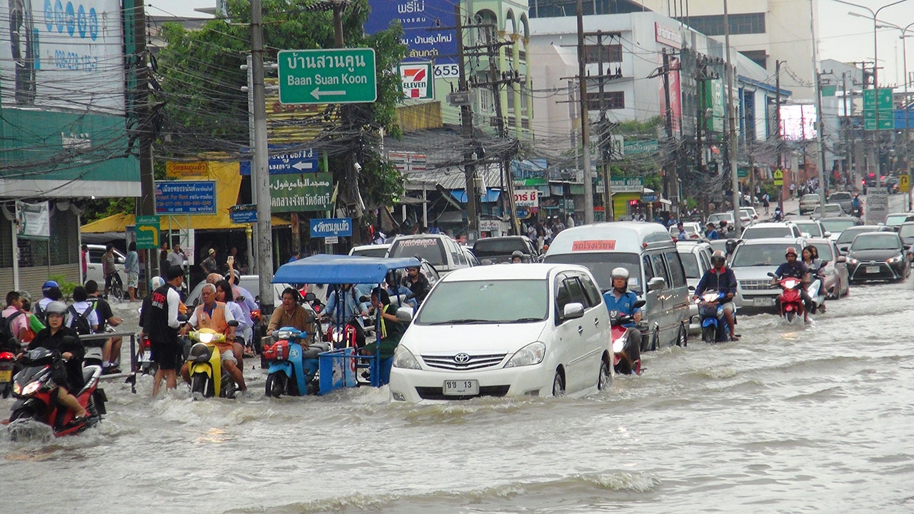 ชลบุรีอ่วมฝนถล่มหนักตั้งแต่กลางดึกจนถึงรุ่งเช้า ตัวเมืองจมบาดาลถนนสายหลัก รถติดหนึบ สถานการณ์ลุ่มน้ำเจ้าพระยาดีขึ้น น้ำล้นตลิ่ง 3 จังหวัดเริ่มคลี่คลาย เชียงรายน้ำป่าทะลักท่วมหมู่บ้านร่องขุ่น ระดับน้ำสูงกว่า 1 เมตร พิษณุโลกแม่น้ำน่านกัดเซาะตลิ่งทรุดกว่า 100 เมตร นครพนมลำน้ำสาขาแม่น้ำโขงล้นตลิ่งท่วมนาข้าวเสียหาย 1 พันไร่