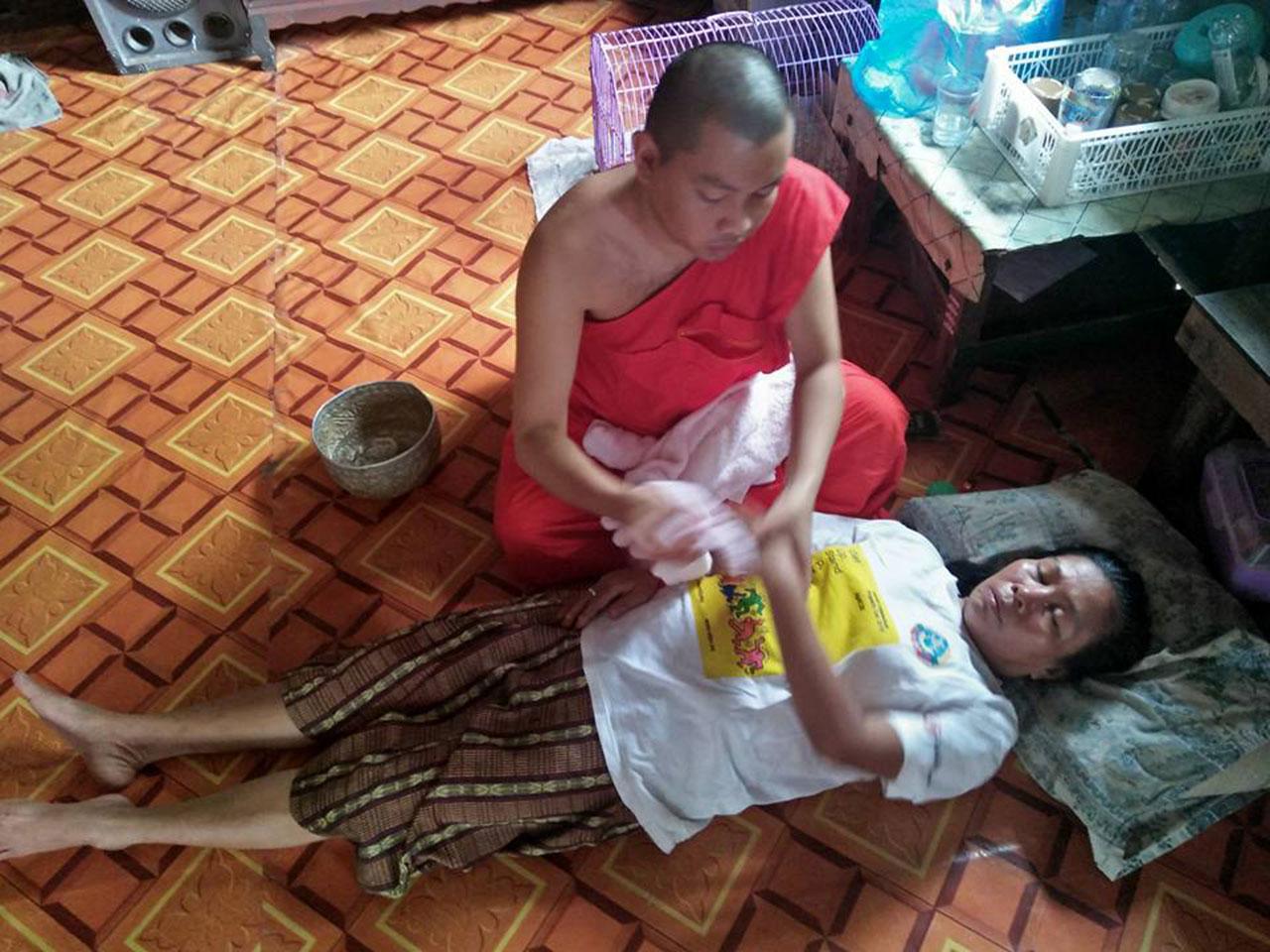 “แม่ของหลวงพี่อายุ 49 ปี ป่วยหลายโรค เป็นความดัน เป็นเบาหวาน ป่วยมานานหลายปีแล้ว บางครั้งหากอาการหนักจะทำอะไรไม่ได้เลย ต้องนอนอย่างเดียวเกือบ 4-5 วัน โยมพ่อก็ป่วยเหมือนกัน ปกติพี่สาวกับน้องชายจะเป็นคนผลัดเปลี่ยนกันมาดูแล เหตุการณ์ในคลิป แม่เกิดเป็นลมกะทันหัน ตอนนั้นพี่สาวกับน้องชายไม่อยู่บ้าน หลวงพี่จึงไปดูแลแทน ซึ่งปกติหลวงพี่ทำแบบนี้เป็นประจำอยู่แล้ว” พระสุลิยาเล่าถึงเหตุการณ์ในคลิป