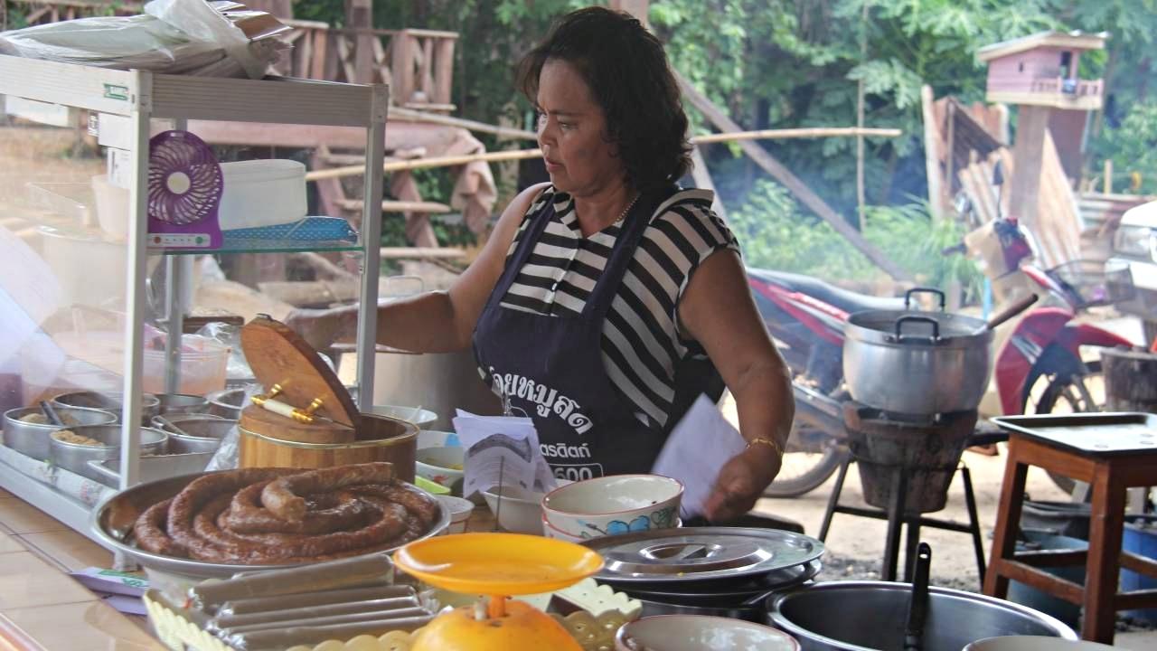 นางประเทือง สาสาร หรือป้าแอ๋ว เจ้าของร้านกล่าวว่า เปิดร้านอาหารมานานกว่า 30 ปีแล้ว ช่วงแรกขายจานละ 5 บาท และขึ้นราคาเรื่อยๆ จนล่าสุดนี้อยู่ที่ราคา 10 บาท ไม่อยากขายในราคาแพง ราคานี้ก็อยู่ได้แล้วและมีที่ดินเป็นของตนเองไม่ต้องเช่าใคร