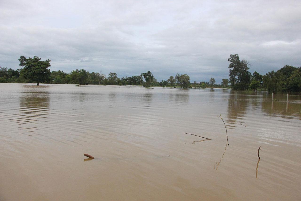 ที่ จ.ศรีสะเกษ หลังเกิดฝนตกหนักตลอดทั้งวันทั้งคืน โดยเฉพาะแถบเทือกเขาพนมดงรัก ชายแดนไทย-กัมพูชา ด้านอำเภอขุนหาญ ภูสิงห์ และอำเภอกันทรลักษ์ ทำให้มีน้ำป่าไหลหลากลงสู่พื้นที่ราบลุ่ม บ้านระหาร หมู่ 3 ต.กระหวัน อ.ขุนหาญ เป็นหมู่บ้านที่อยู่พื้นที่ต่ำ ต้องรองรับน้ำที่ไหลหลากจากที่สูงแถบเทือกเขาต่างๆ น้ำที่มาจากลำห้วย ลำน้ำสาขาทุกที่ และยังมีน้ำฝนสะสมไหลลงมารวม