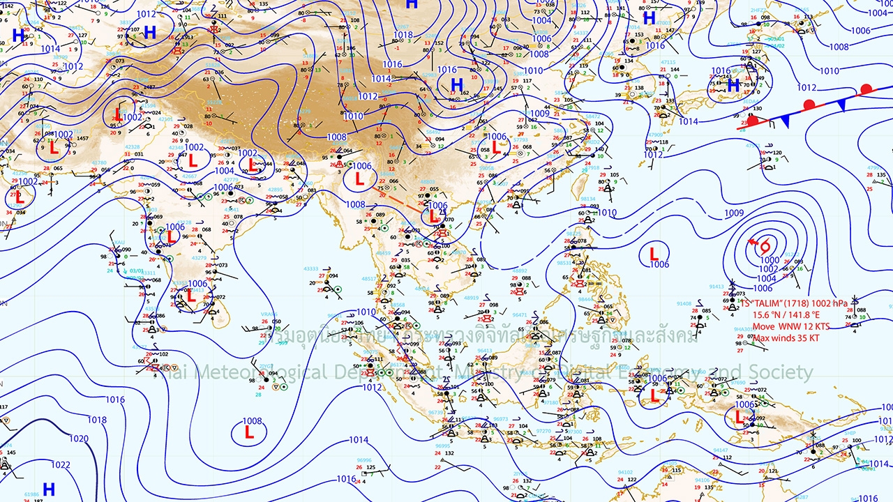 ประเทศไทย มีปริมาณฝนลดลง เพราะร่องมรสุมกำลังอ่อน ยังพาดผ่าน เมียนมา ลาว และ เวียดนามตอนบน ประกอบกับมรสุมตะวันตกเฉียงใต้กำลังอ่อน พัดปกคลุมทะเลอันดามันและประเทศไทย ยกเว้นภาคเหนือ และภาคใต้ตอนล่างสุด ที่ติดมาเลเซีย ยังมีฝนตกหนักบางแห่ง...