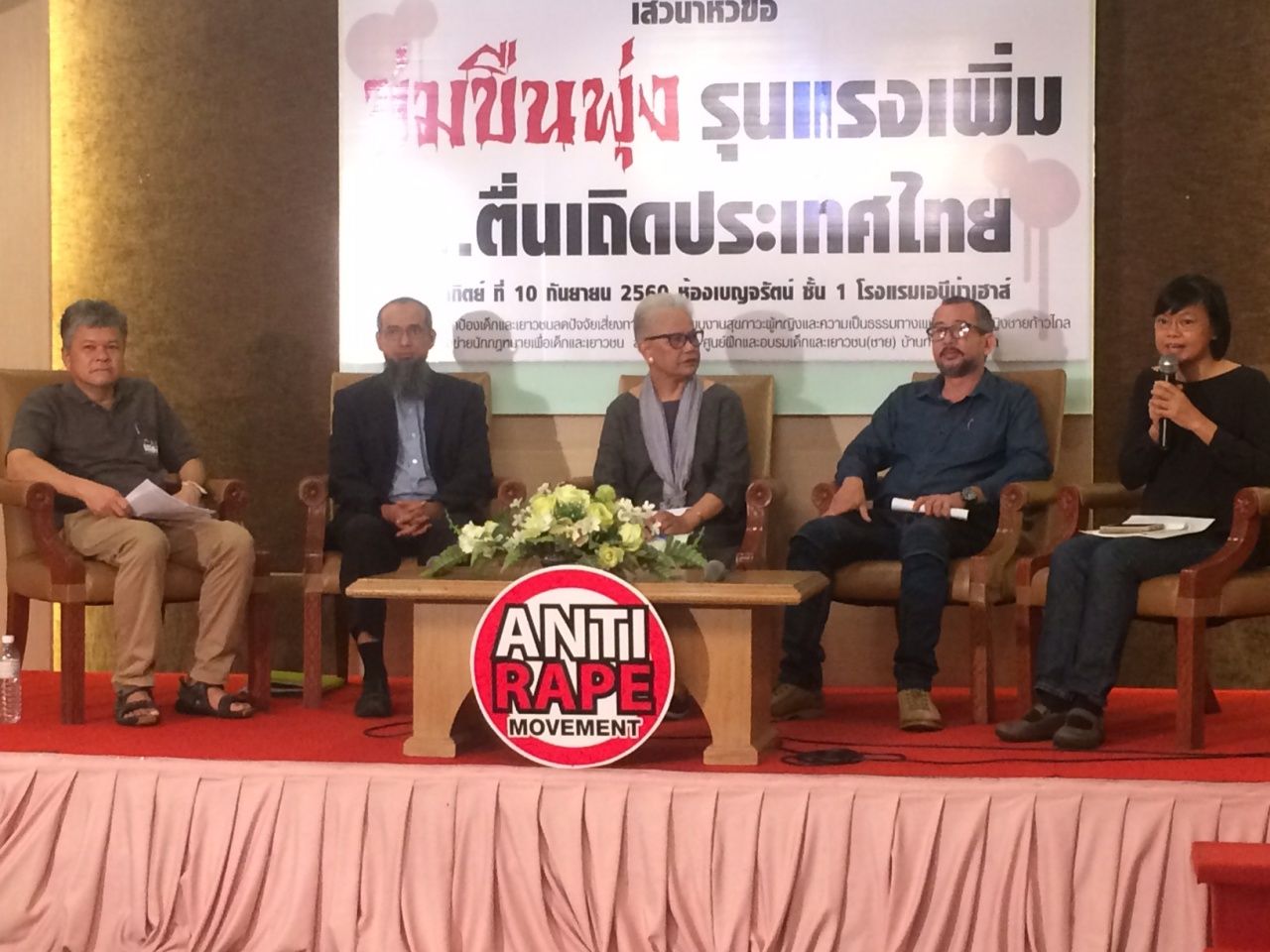 วงเสวนา “ข่มขืนพุ่ง รุนแรงเพิ่ม ตื่นเถิดประเทศไทย” อัด พ.ร.บ.คุ้มครองเด็ก เป็นเสือกระดาษตัวใหญ่ ไม่สามารถบังคับใช้ได้จริง กรณีเด็ก 14 ถูกชาย 40 คน ข่มขืนที่พังงา ชี้ สถิติเด็กอายุ 10-15 ปี ถูกล่วงละเมิดทางเพศสูงสุดจากคนใกล้ตัว
