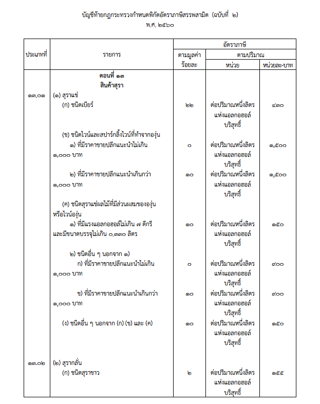 - สุราในประเทศขนาดขวด 700 มิลลิลิตร 28 ดีกรี จะปรับขึ้น 8 -30 บาทต่อขวด