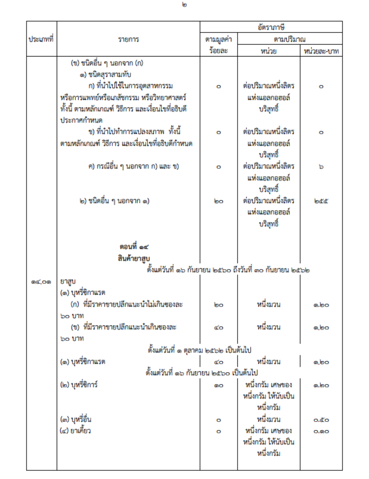 ราชกิจจาฯ ประกาศ พ.ร.บ.ภาษีสรรพสามิตฉบับใหม่ 2560 ราคา เบียร์ ขึ้น 0.50-2.60 บาท เหล้าขึ้น 8-10 บาท เหล้านอกลดลง 2-20 บาท บุหรี่ ต่ำกว่า 60 บาท ขึ้น 4-5 บาท ราคาสูงกว่า 60 บาท ขึ้น 2-10 บาท