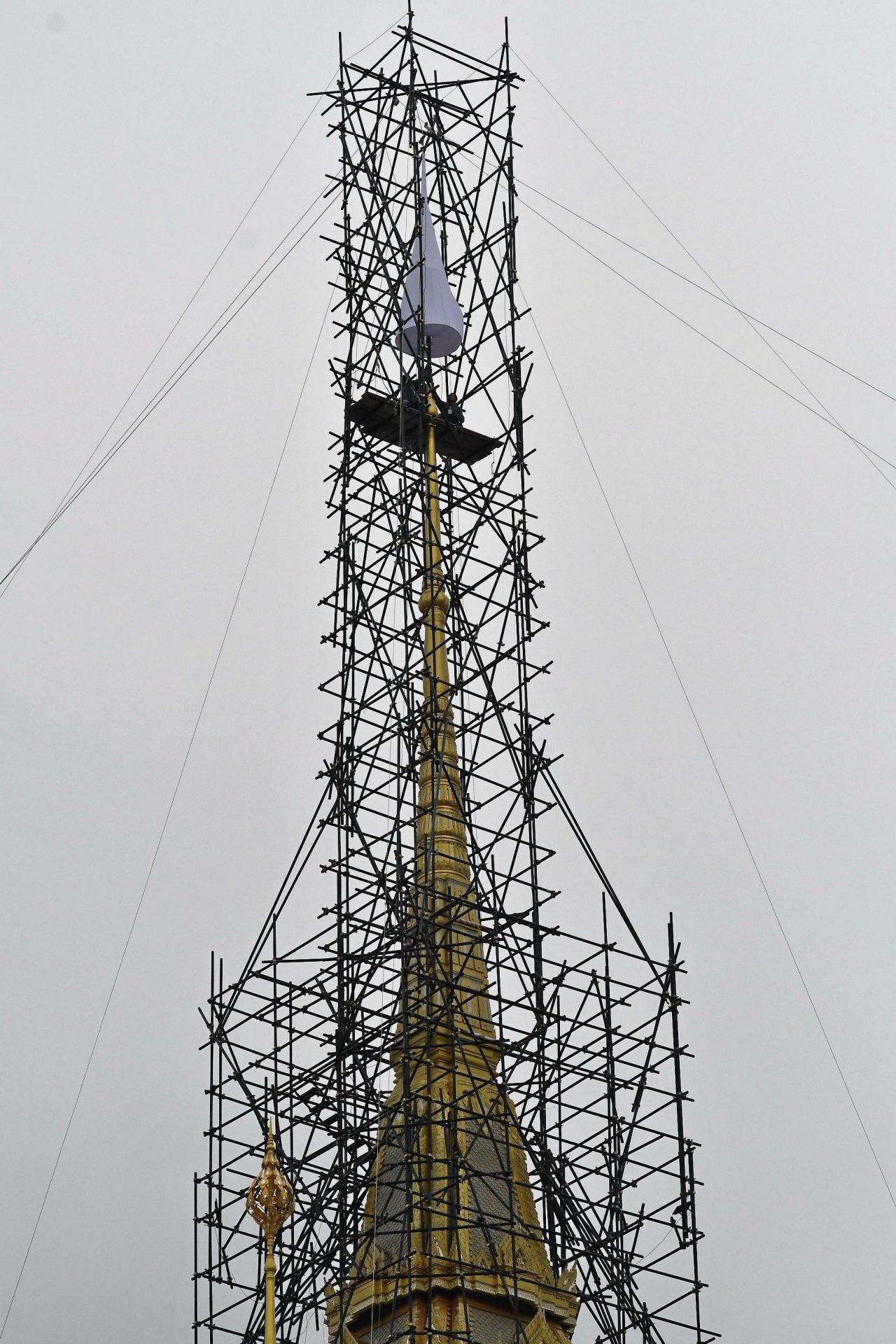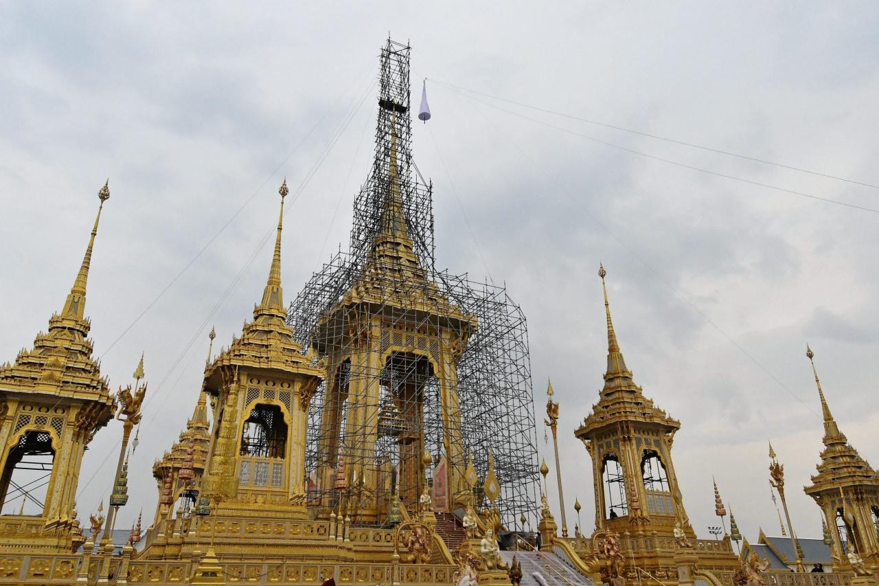 ขณะที่บริเวณพระเมรุมาศ จะมีการรื้อนั่งร้านออก ในคืนวันที่ 17 ตุลาคม นี้ ให้แล้วเสร็จภายในเช้าวันที่ 18 ตุลาคม จะเหลือเพียงบางส่วนคือ บริเวณพระเมรุมาศองค์ประธาน โดยวันที่ 18 ตุลาคม นั้น สมเด็จพระเจ้าอยู่หัว จะเสด็จพระราชดำเนินมาทรงยกพระนพปฎลมหาเศวตฉัตรพระเมรุมาศ ถือเป็นอันเสร็จสมบูรณ์