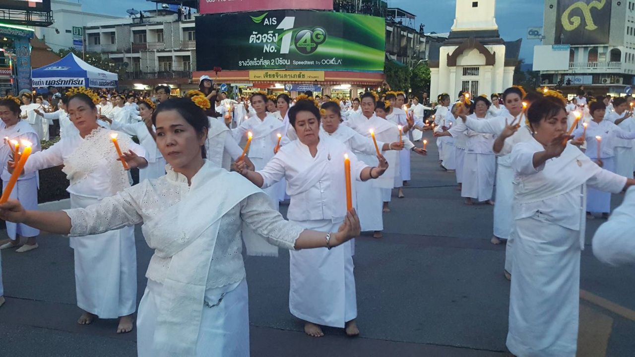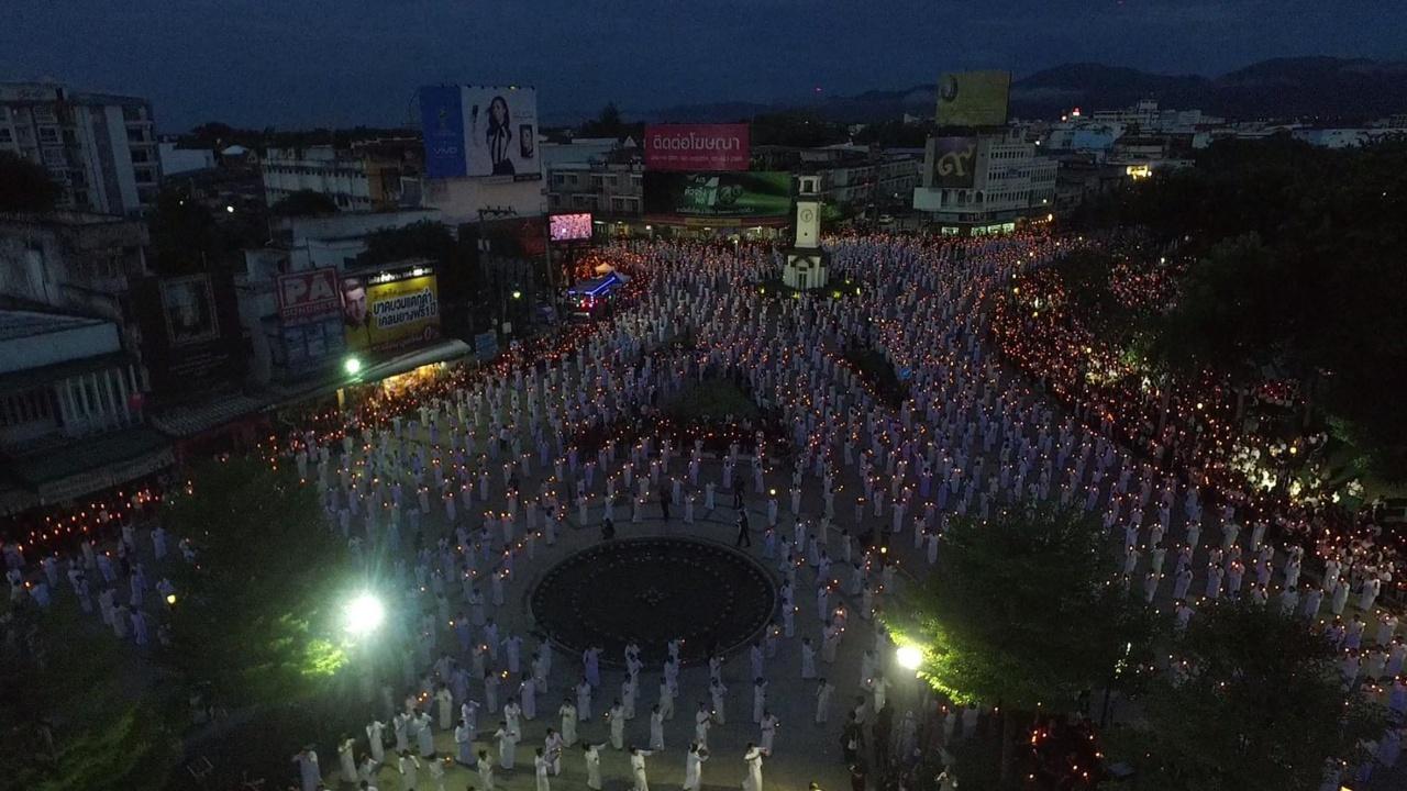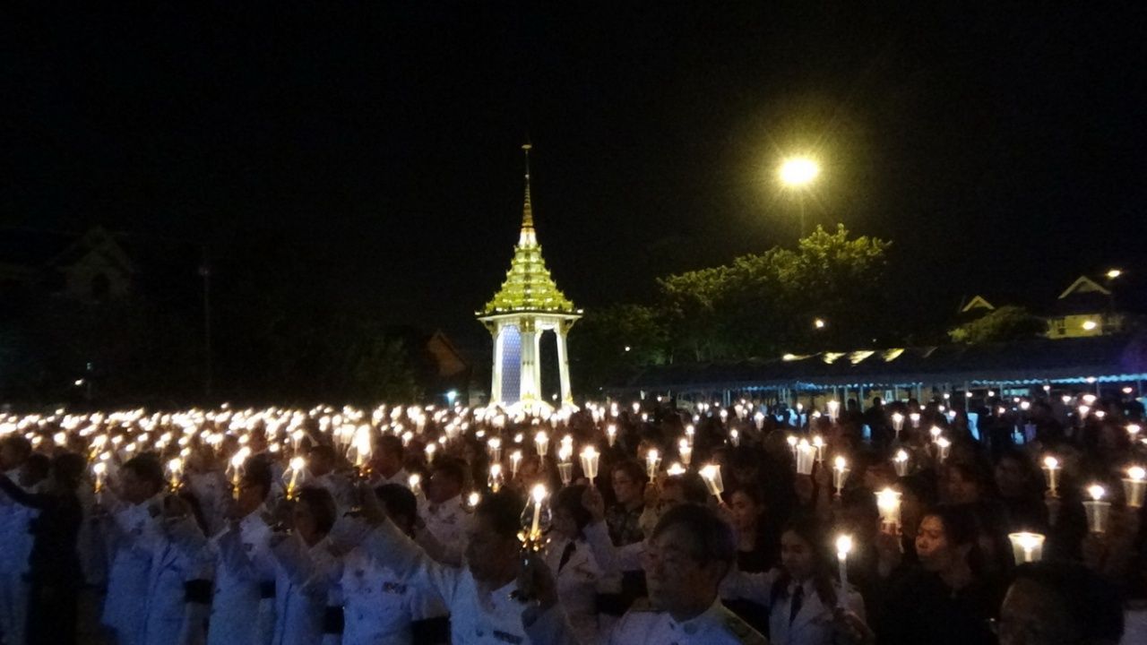 ส่วนประชาชนที่มาร่วมกิจกรรมต่างแต่งกายชุดสีดำและได้ร่วมกันนั่งสวดมนต์เจริญจิตภาวนาและร่วมกันจุดเทียน จากนั้นจิตอาสา ชาว จ.ลำปาง จาก 13 อำเภอ ทั้งเด็ก ผู้ใหญ่ และผู้สูงอายุ ร่วมฟ้อนเทียนอย่างสวยงาม เพื่อเป็นการแสดงความอาลัย และสำนึกในพระมหากรุณาธิคุณอย่างหาที่สุดไม่ได้ของในหลวง รัชกาลที่ 9