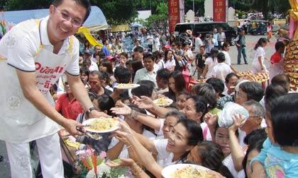 เมื่อเวลา 10.00 น.วันที่ 8 ต.ค. ที่พุทธสถาน จ.เชียงใหม่ นายบุญเลิศ บูรณุปกรณ์ นายกองค์การบริหารส่วนจังหวัดเชียงใหม่ ได้เป็นประธานเปิดงานเทศกาลกินเจ ของ จ.เชียงใหม่ โดยมีขบวนแห่มังกรทอง และสิงโต อย่างยิ่งใหญ่ มีชาวเมืองเชียงใหม่พร้อมใจกันแต่งชุดขาวมาร่วมงานอย่างคับคั่ง โดยทางนายบุญเลิศ ได้ร่วมกับนายเฉลิมศักดิ์ สุรนันท์ ผู้อำนวยการการท่องเที่ยวแห่งประเทศไทย หรือ ททท.สำนักงานเชียงใหม่ ได้ทำการผัดหมี่กระทะยักษ์ที่ทำขึ้นมาโดยกระทะมีเส้นผ่านศูนย์กลาง 3 เมตร ให้เส้นหมี่เหลืองมงคล จำนวนถึง 80 กิโลกรัม เครื่องปรุงพร้อมผัก น้ำหนัก 30 กิโลกรัม โดยกระทะแรกที่ผัดเสร็จสามารถเลี้ยงผู้มาร่วมงานได้จำนวนถึง 1,000 จาน สร้างความตื่นตาตื่นใจให้กับผู้มาร่วมงานรวมทั้งนักท่องเที่ยวเป็นอย่างมาก นอกจากนี้ยังมีการแสดงมังกรทองยาวถึง 50 เมตร อย่างสวยงามและน่าตื่นเต้น ในการปีนเสาไม้ไผ่ ของคณะเชิดมังกรและสิงโต