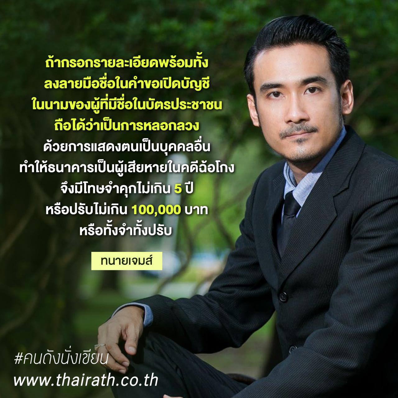 สวัสดีท่านผู้อ่านทุกท่านครับ สัปดาห์นี้ยังคงคุยกันเรื่องของกรณีที่มีบุคคลอื่นนำบัตรประชาชนไปเปิดบัญชีธนาคาร เพื่อนำไปรับโอนเงินที่ได้จากการหลอกลวงผู้อื่นทางออนไลน์ เพราะเป็นเรื่องสำคัญและใกล้ตัว อีกทั้งยังสร้างความเดือดร้อนให้กับเจ้าของบัตรประชาชนเป็นอย่างมาก ไม่ว่าจะเป็นกรณีของฝรั่งหลอกจีบสาวไทย หรือเป็นกรณีของการอ้างว่าผู้เสียหายส่งสิ่งของผิดกฎหมายไปทางไปรษณีย์ หรือกรณีที่แฮก Facebook แล้วหลอกยืมเงินจากเพื่อนของผู้ใช้บัญชี Facebook ฯลฯ สุดท้ายสร้างความเสียหายให้แก่เจ้าของบัตรประชาชนเป็นอย่างมาก เนื่องจากต้องไปเป็นพยานให้กับพนักงานสอบสวนตามท้องที่เกิดเหตุในหลายจังหวัด บางกรณีพนักงานสอบสวนออกหมายเรียกถึงสองครั้ง แต่เจ้าของบัตรประชาชนไม่อยู่บ้าน ทำให้พนักงานสอบสวนต้องขออนุมัติออกหมายจับ ยิ่งทำให้ยากแก่การแก้ไขปัญหาในทางกฎหมาย